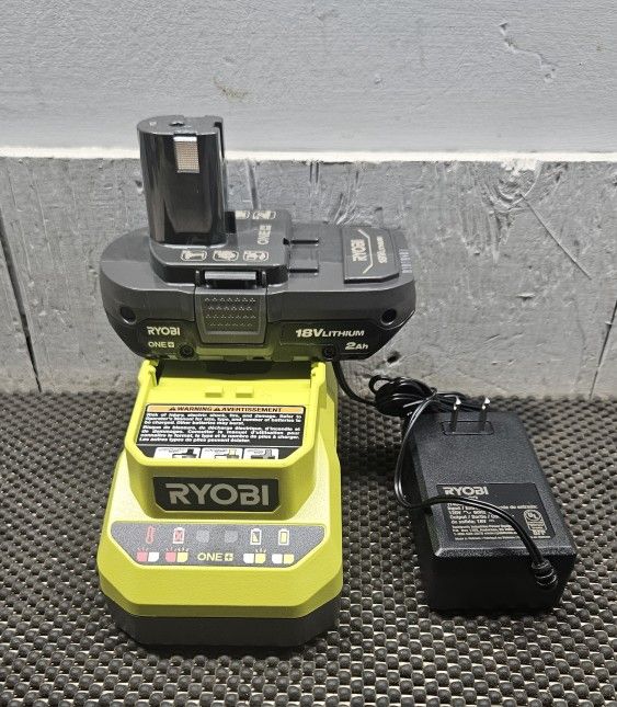 RYOBI ONE+ 18V Lithium-Ion 2.0 Ah Compact Battery and Charger Starter,open box never used,pick up only,firm price thanks.
