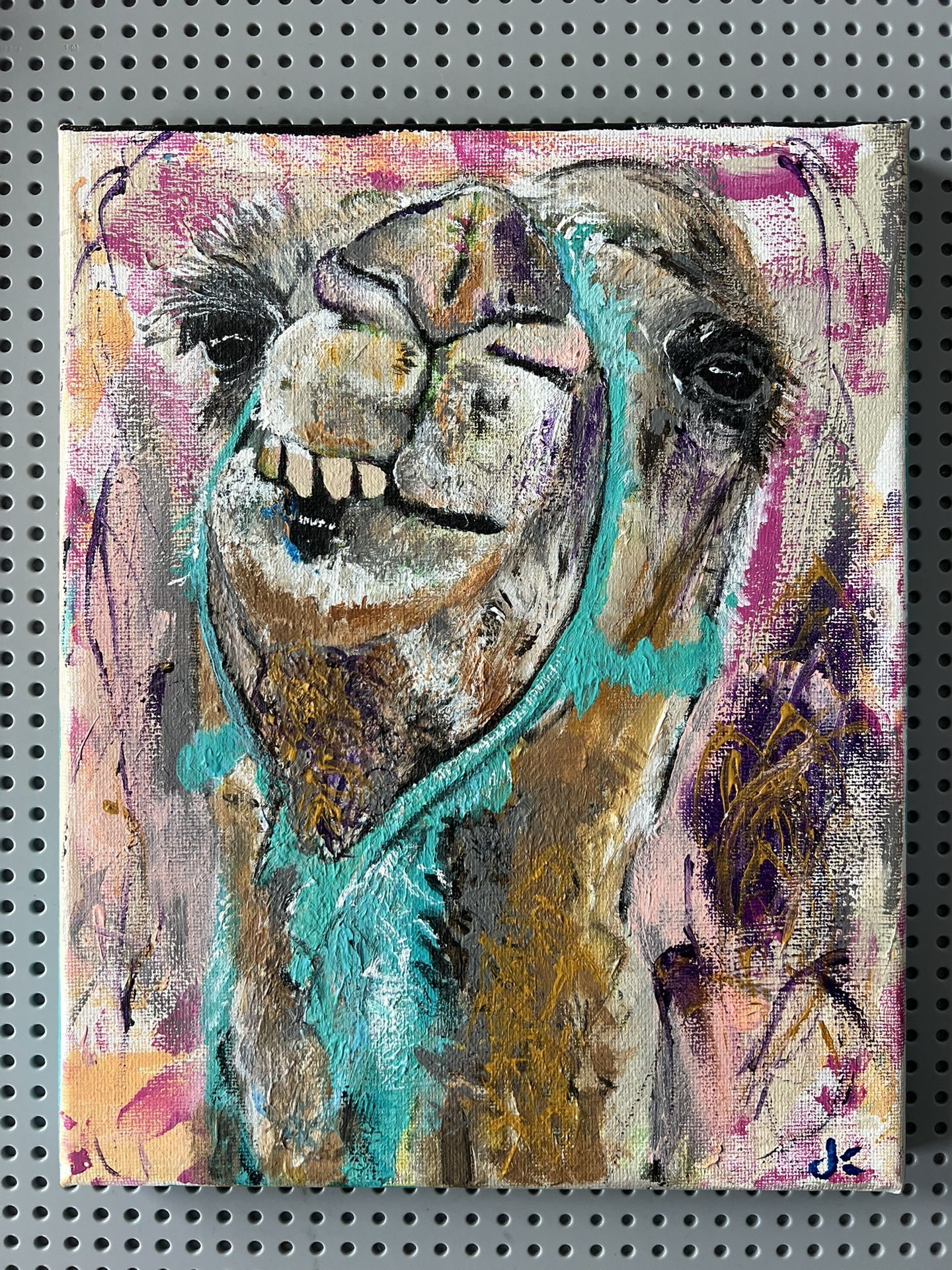Hand painted original abstract camel painting of a safari camel for hire Merzouga, Morocco. Painted in 2018 & signed by artist