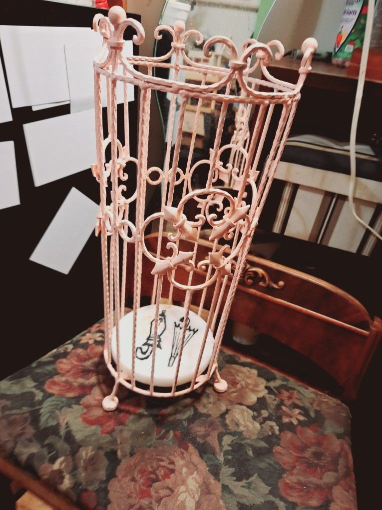 Pretty Pink Umbrella Stand W/ Heavy Marble Base