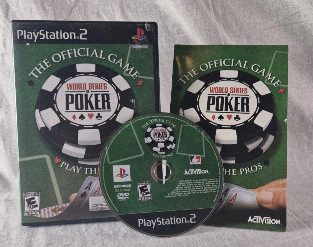 The World Series of Poker (WSOP) on PS2 is a video game that simulates the experience of competing in poker tournaments, including the main event. Players create a character and can progress through a career mode, playing various poker games to win money and gain experience, with the ultimate goal of winning the World Series of Poker. The game features authentic poker pros and commentary from hosts like Lon McEachern and Norman Chad, along with online multiplayer and customizable tournament options. Video Games- As these are used games, there may be some light scratches, but games were tested and are fully playable. Buy 1 is full price Buy 2 is 10% off total Buy 3 is 15% off total Buy 4 is 25% off total