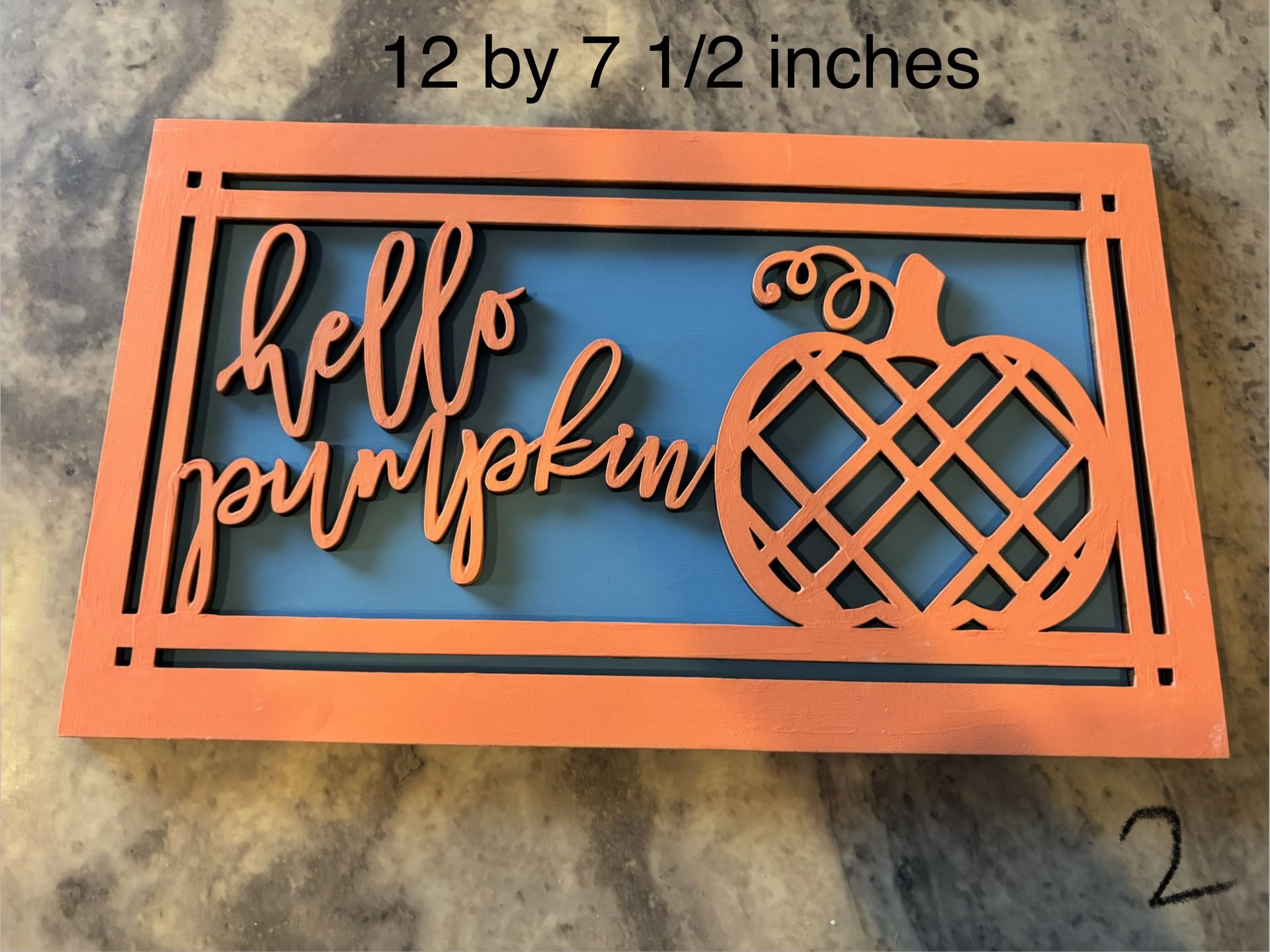 Good Condition! Smoke Free Home. *This is hand made! (there will be lil imperfections) *Needs stand/hardware Fall Decoration Sign “Hello Pumpkin” Size: 12 by 7 1/2 inches $10 Yorkville Porch PickUp Cross Posted *Check out my other offers!* -Sorry I do not ship- $CASH ONLY$
