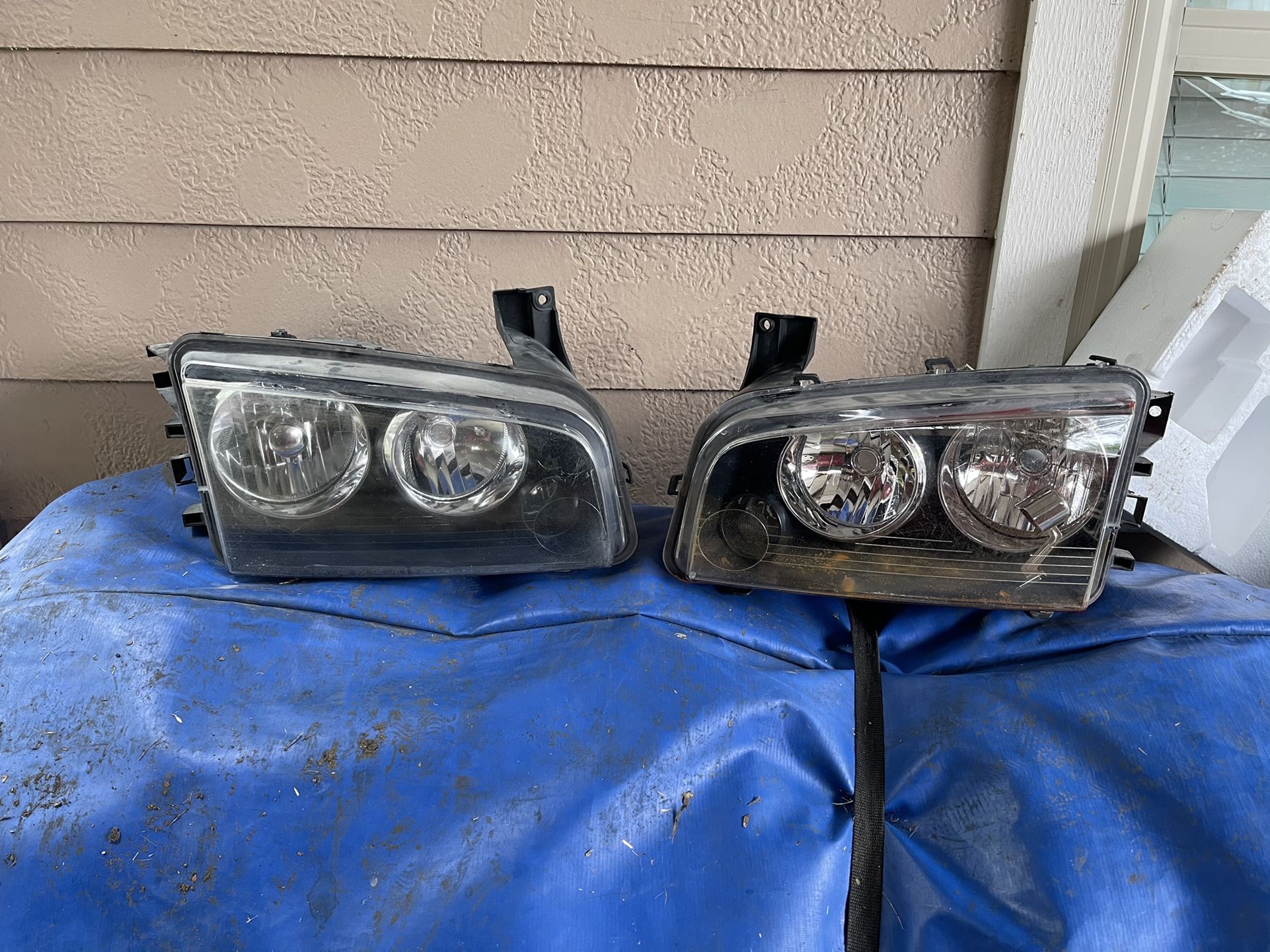 06-10 charger stock headlights NO corner signals Luces para Dodge Charger ONE OF THE hinches On RIGHT (Passenger side one) is broken but Can still be put on