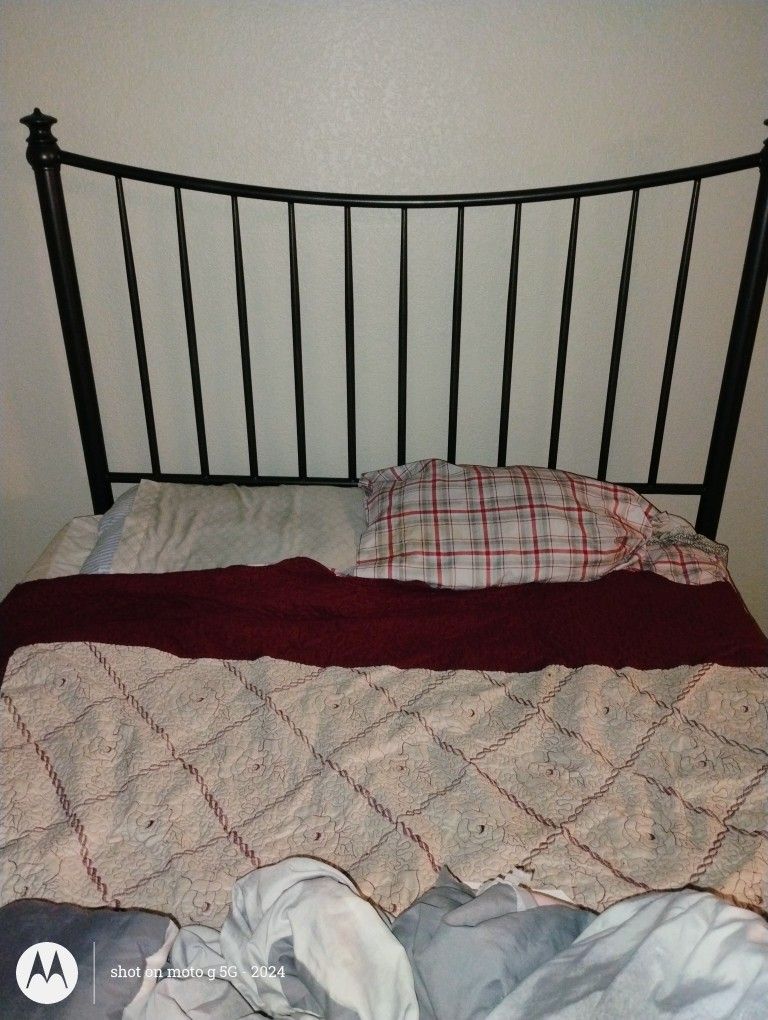 Queen Bed Frame And Headboard With Mattress And Box Spring