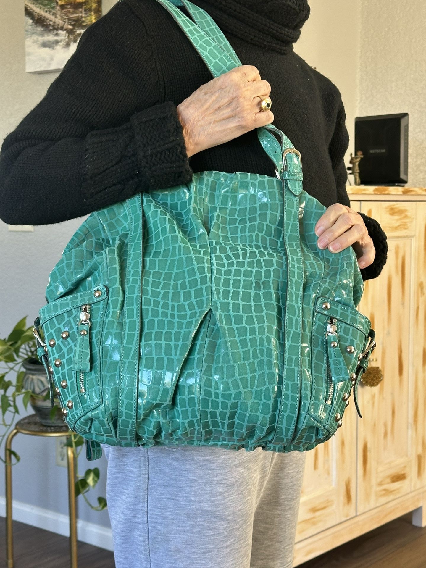 Kathy Van Zeeland Large Turquoise Tote Purse
