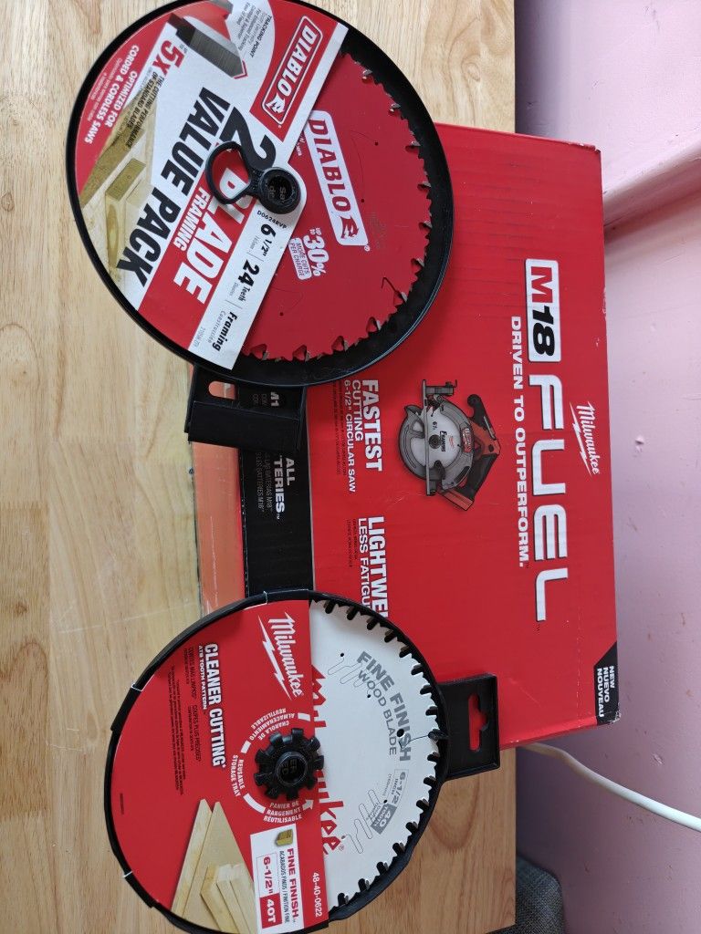 Brand new m18 fuel 6 1/2 inch saw. Comes with 1 Milwaukee fine finish + 2 framing saw blades