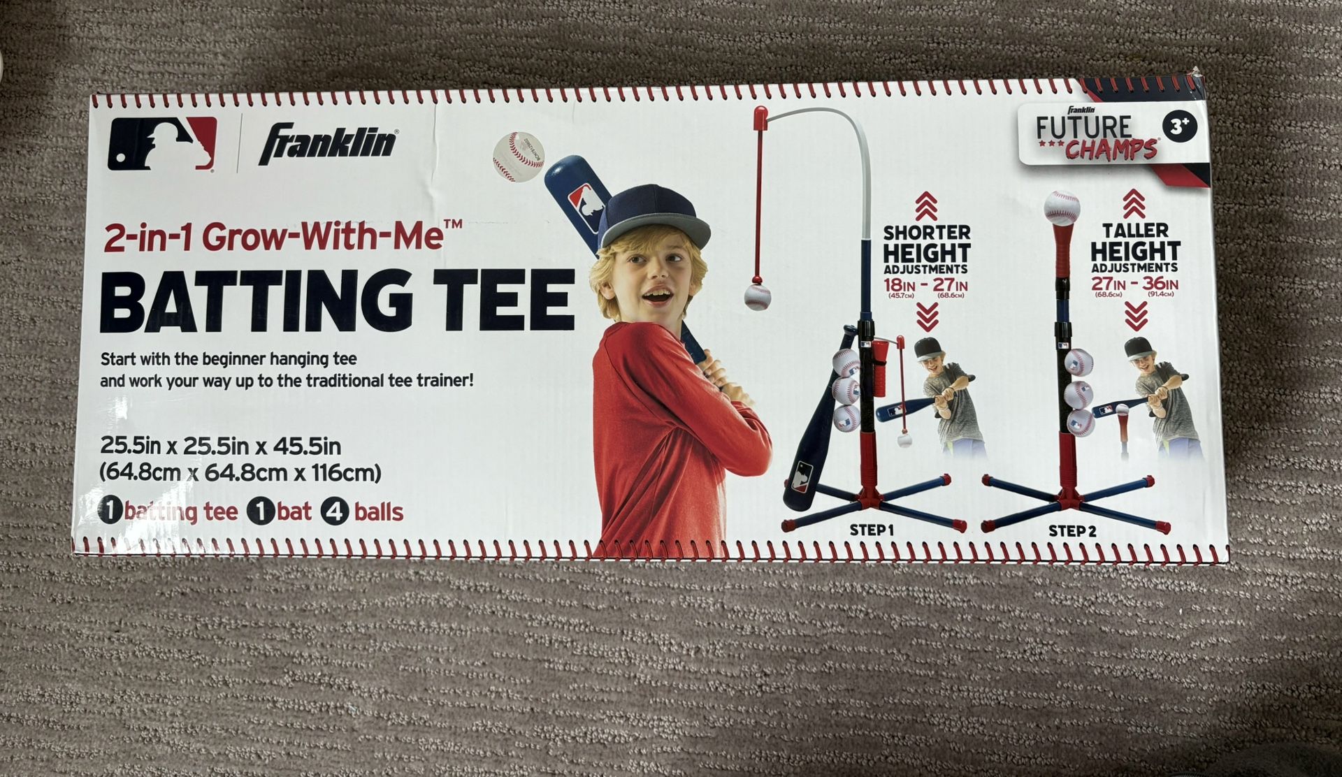 Franklin 2-in-1 grow with me. Batting tee. Start with the beginner hanging tee and work your way up to the traditional tee trainer