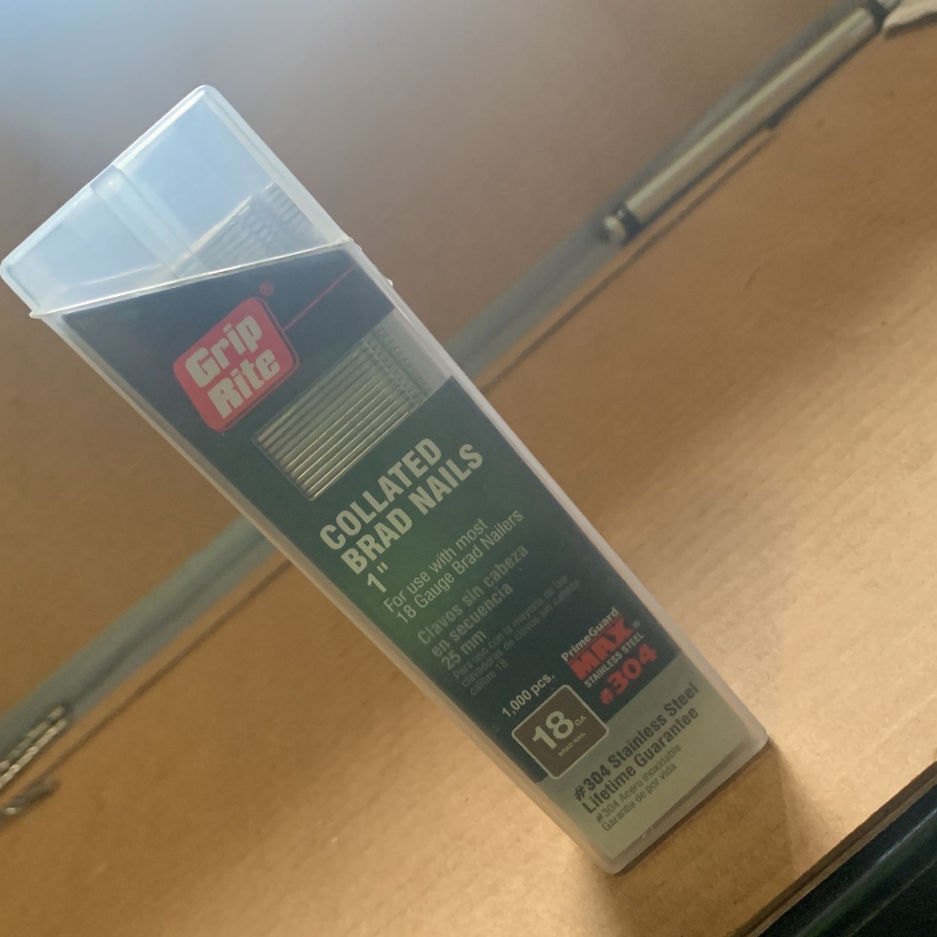 All items are for pick up from Lyons only. This item is new. Grip Rite Prime Guard Model #MAXB64875 18-Gauge 304-Stainless Steel Brad Nails in Belt-Clip Box (Pack of 1000), 1"