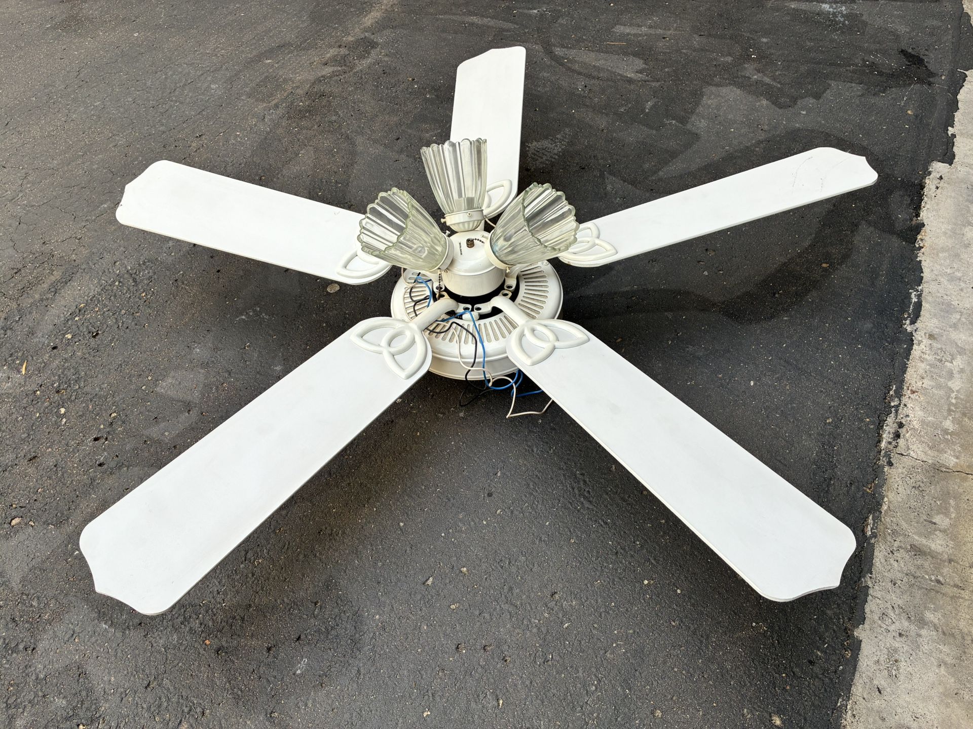 Ceiling fan for sale, runs great, very quiet. Has 3 screw-in bulbs