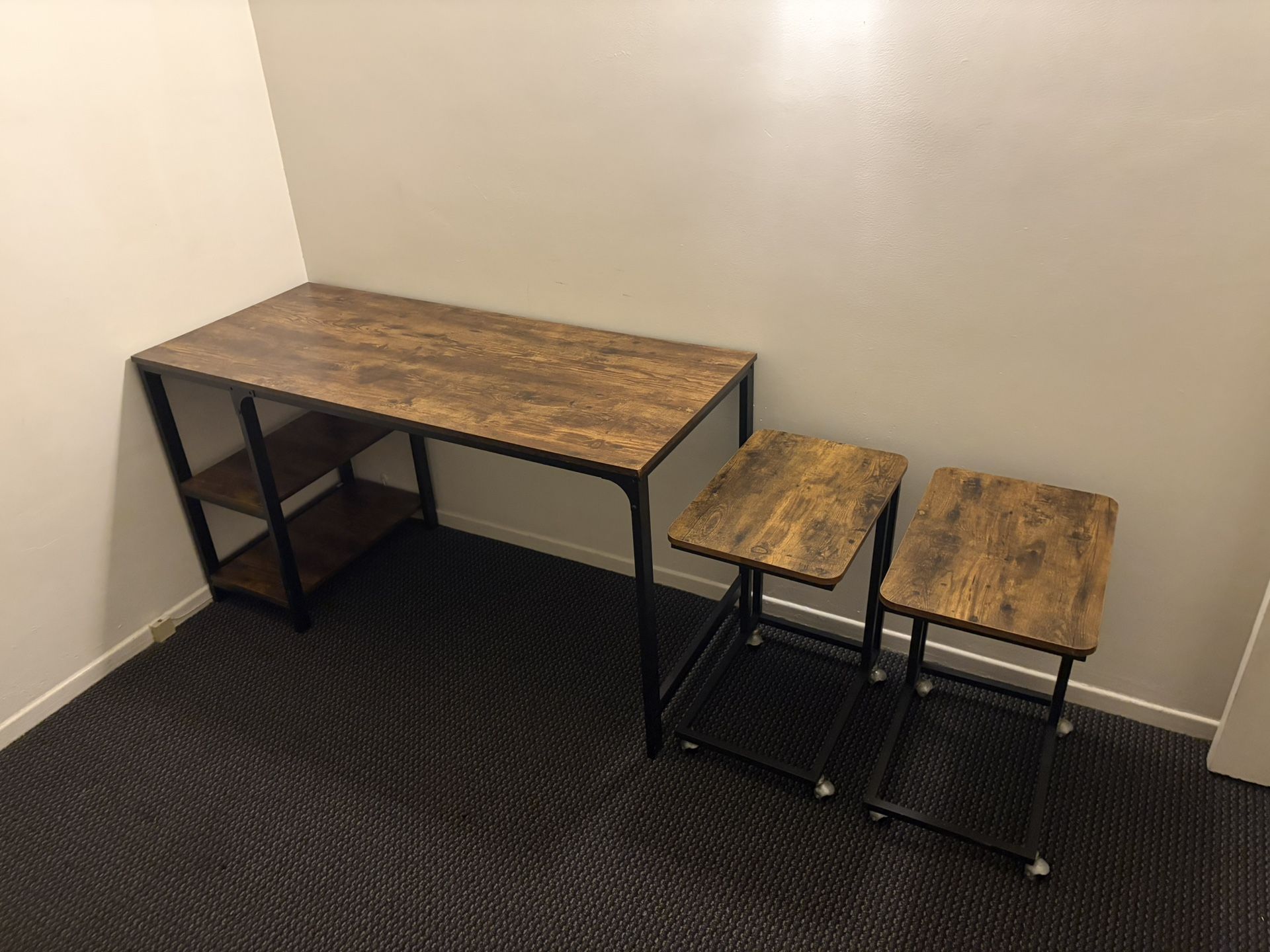 Used Bedroom Set: Bedframe, 2 Side Table, A Bookshelf, And A Desk