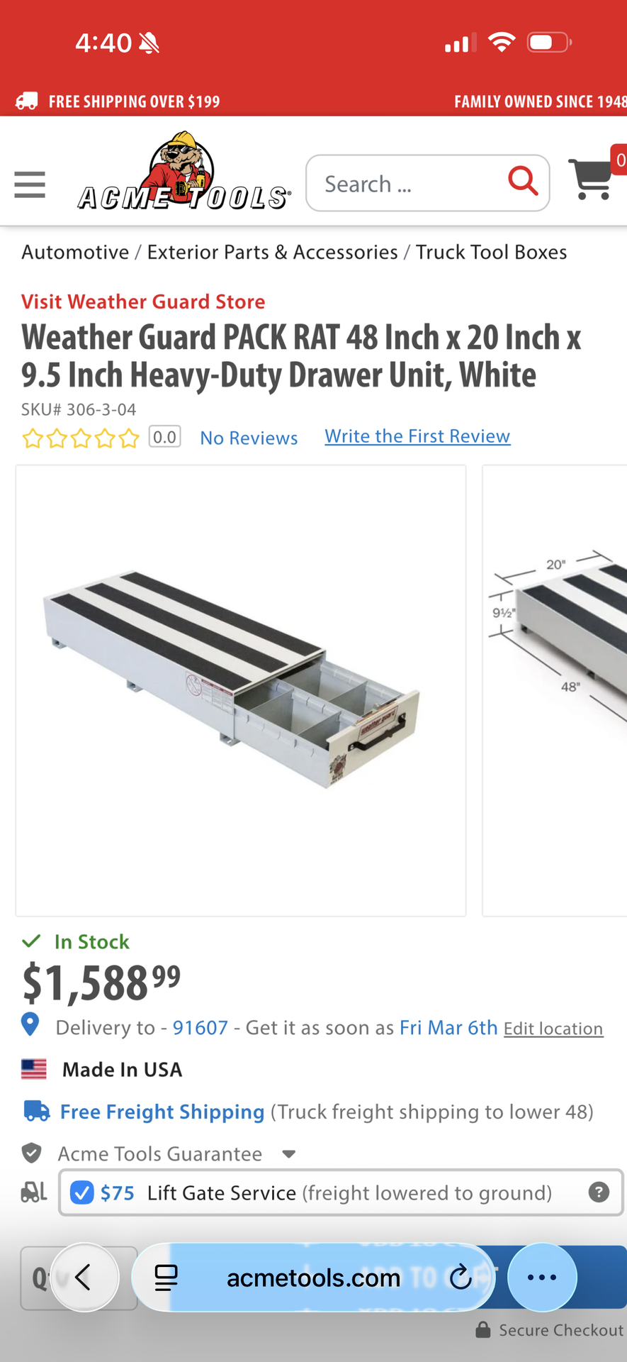 Weather guard pack rat 48”x 24”x9 1/2 “heavy duty drawer unit. It’s in good condition. * I lost the keys of the lock. Price to sell quick. $600 or best offer