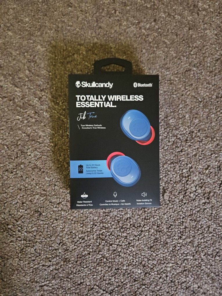 Brand new Skullcandy Jib True wireless earbuds. Never used and still in original packaging. Features: • Up to 6 hours battery in earbuds + 16 hours in charging case • Water-resistant earbuds • Call, track, and volume control • Noise-isolating fit • Works with Android and iPhone • Can use either earbud individually Includes charging case, ear gels (S/M/L), micro-USB charging cable, and user guide. Great sound quality and perfect for workouts, calls, or daily use.