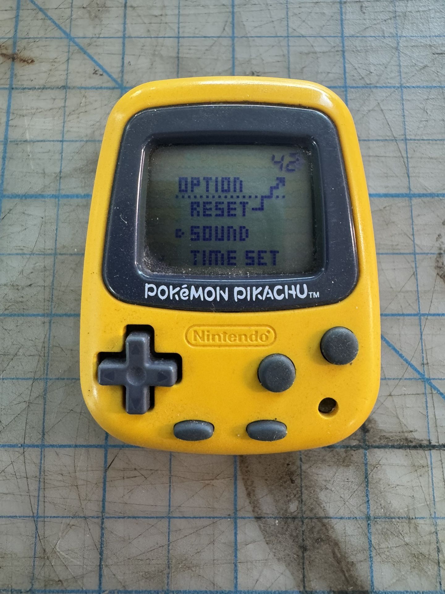 Retro pocket pikachu from the 90s. Functions nicely, new battery, sound is the only thing that doesn’t work. Great blast from the past!