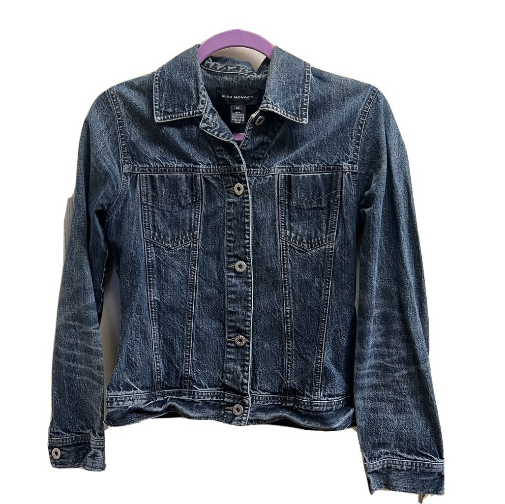 Club Monaco Dark Wash Womens Denim Jean Jacket Distressed Finish Size S/P