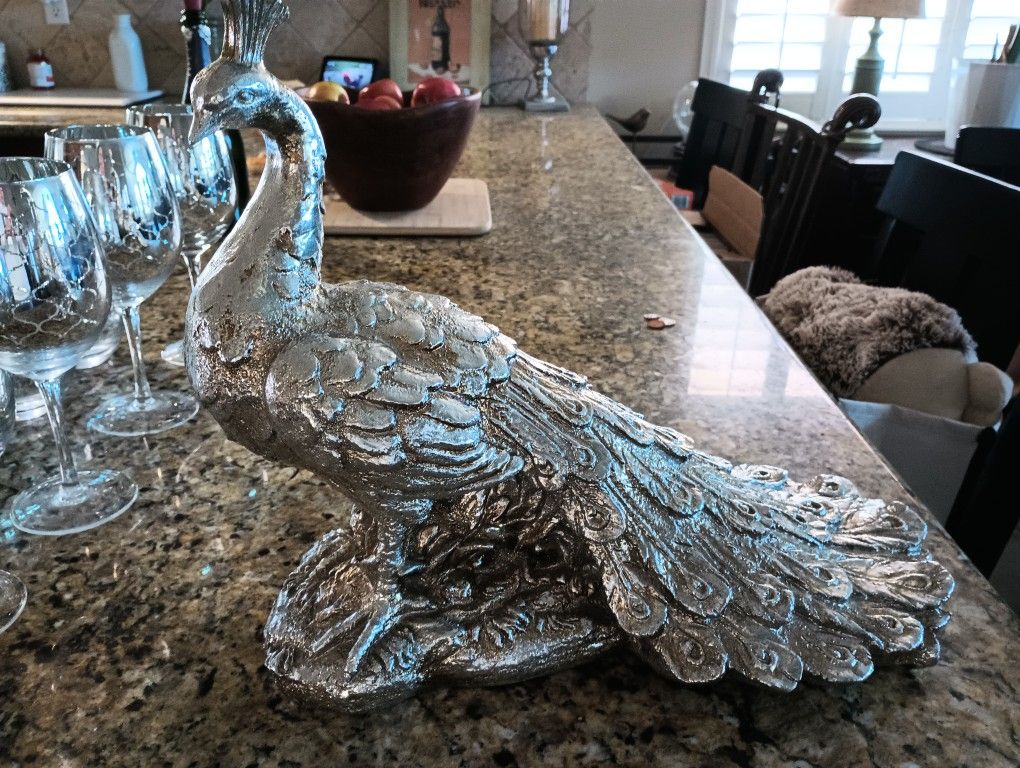 New Peacock Statue Indoor decor, Beautiful approx 14 in tall by 16in long, 9 in wide Pier 1 Very pretty and will definitely add a touch of Elegance to any indoor decor. $45 obo