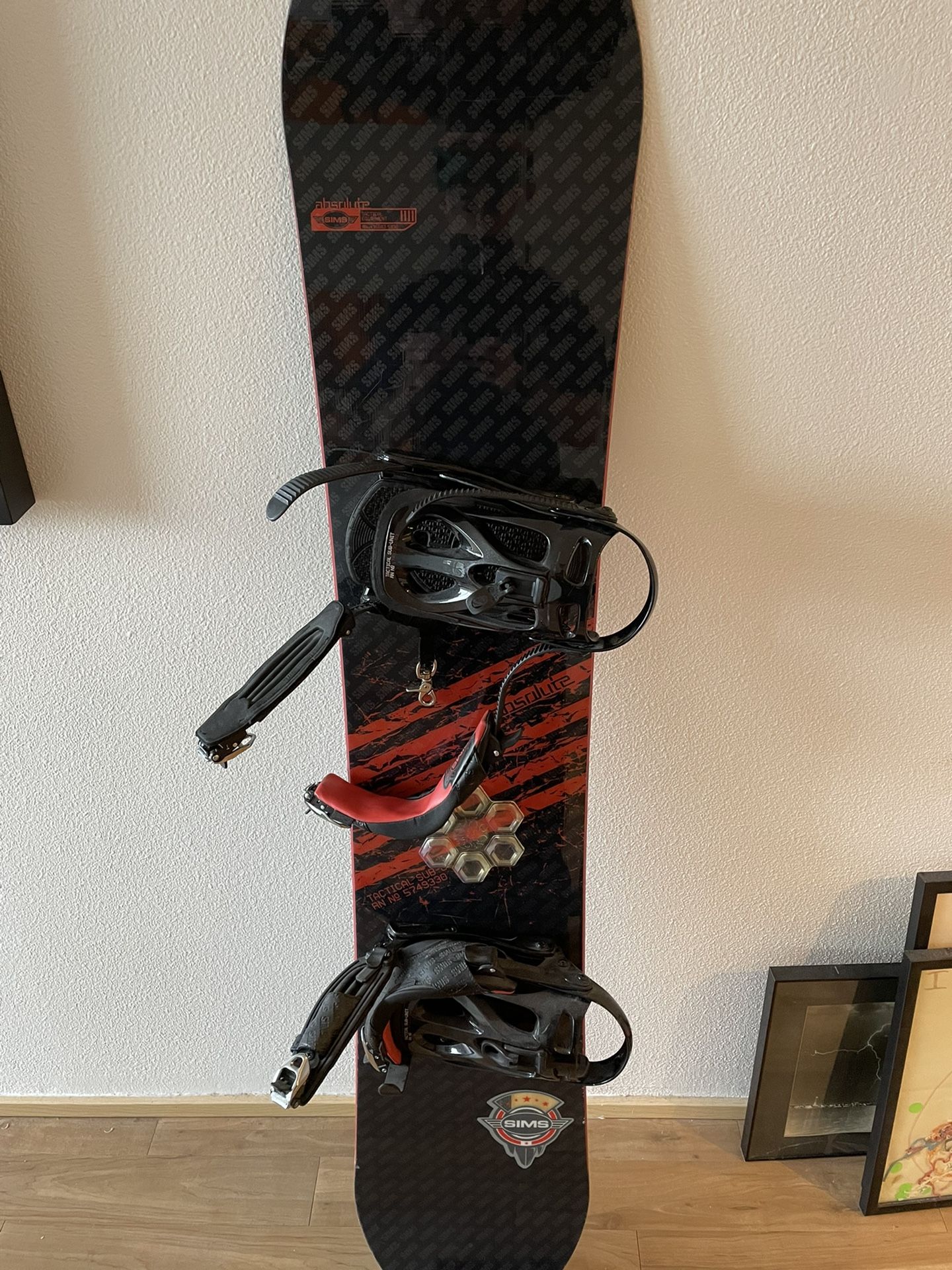 SIMS Absolute all mountain board and bindings. I am the sole owner of the board and have taken very good care of it. Light/normal wear, I took 5-6 seasons off so this board has very little mileage. Rode it last season and still works like a charm. Nothing fancy as it’s an older board but still a great starter/intermediate board for a bargain 154cm