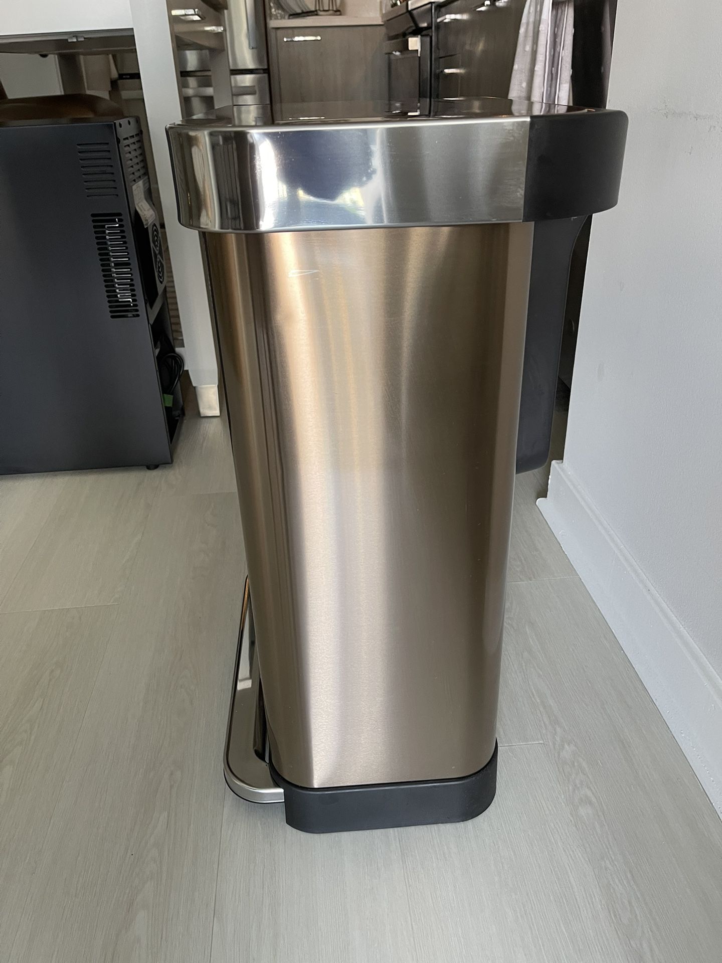See pics for size Q -size trash bags Stepper fully functional Show same wear on front of can Reg Price: $240