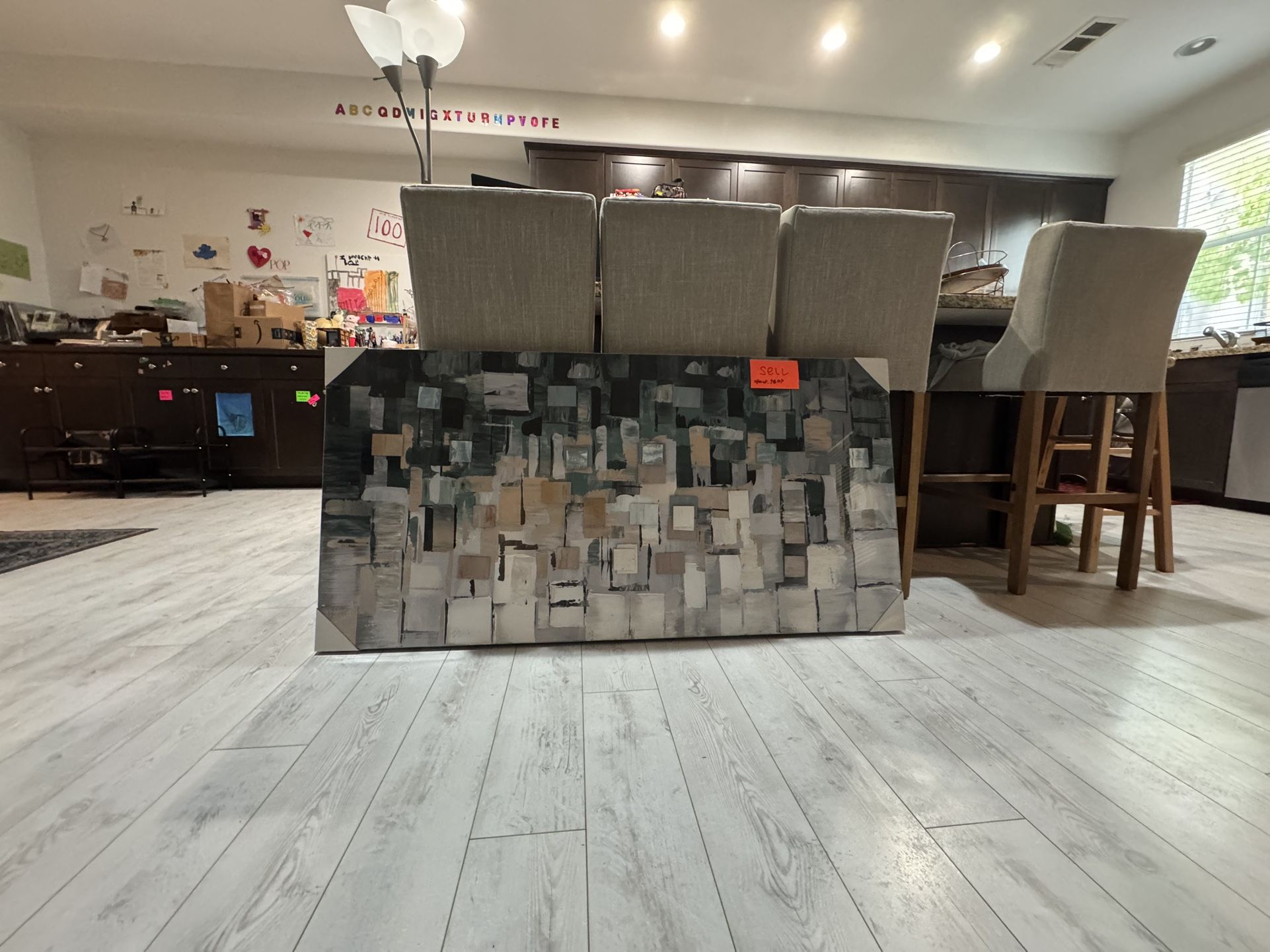 Modern artwork. See photos for dimensions. Still in plastic wrap from Wayfair, never used. Excellent condition.