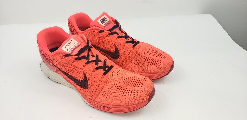 Nike LunarGlide 7 Mens Bright Crimson Orange Flyknit Running Shoes Size 12