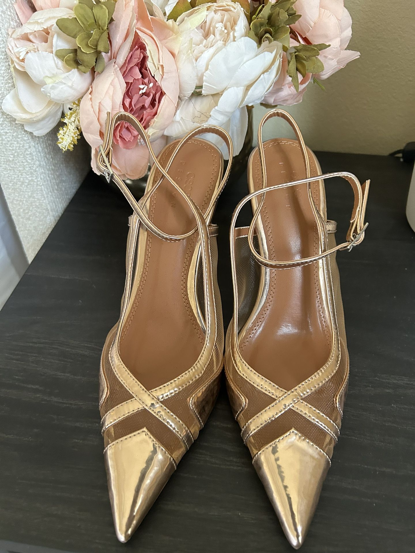 45 – Brand New ASOS DESIGN Heels ✨ ASOS DESIGN Panama mesh detail high-heeled shoes in rose gold • Never worn • Size US 6.5 • Pointed toe, mesh detail, elegant fit Perfect for weddings, Eid, parties, or special occasions. Pickup or meet-up available. If you want, I can also add: • Porch pickup • Zelle / Cash App • Price firm or OBO