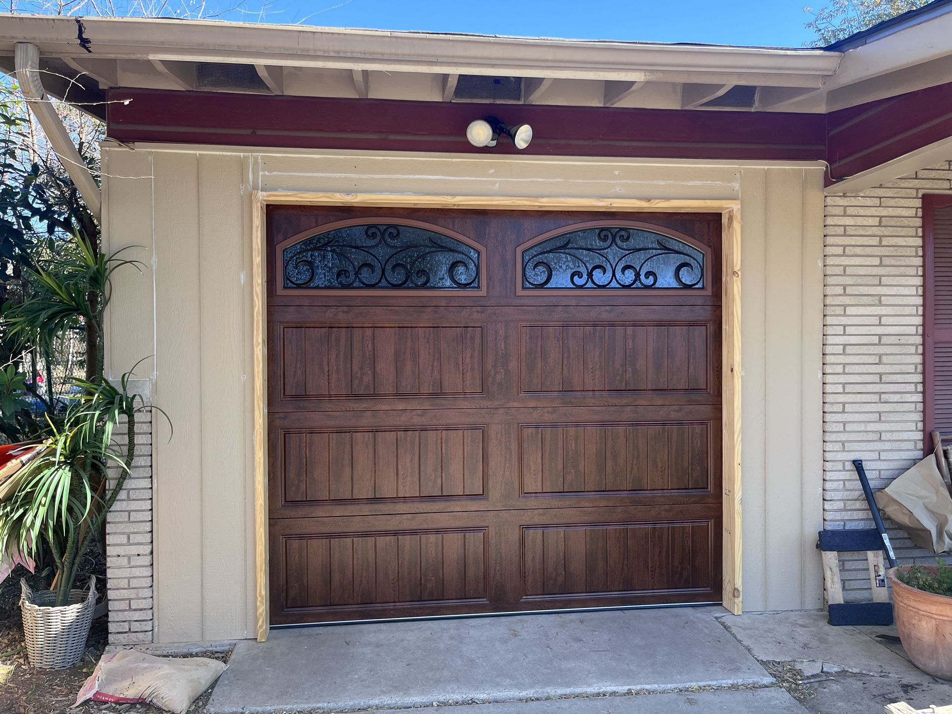 New Ultra grane Walnut finish garage door 8x7 With windows Installed (No opener included)