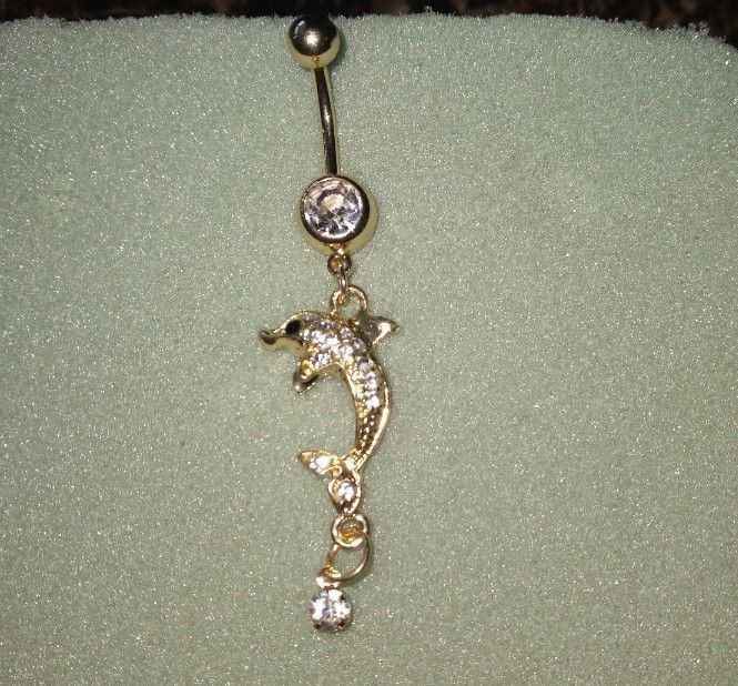 New. Stainless steel. Dolphin With Rhinestones Belly Ring.