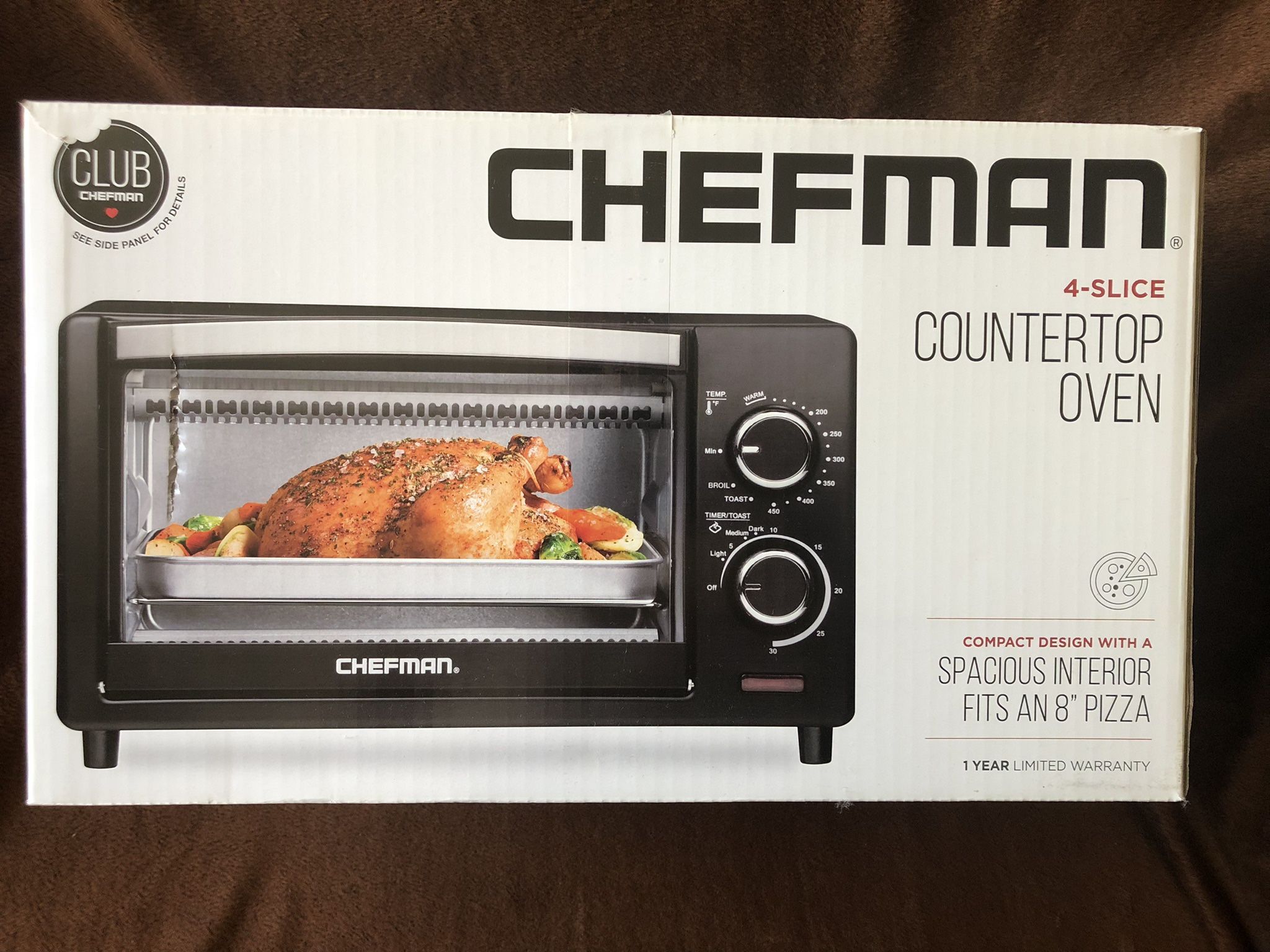 Chefman 4 Slice Countertop Oven w/ Variable Temperature Control and 30 Minute Timer; Cooking Functions to Bake, Broil, Toast and Keep Warm. Brand new