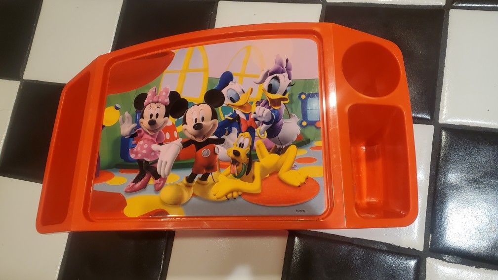 Disney Mickey Mouse , Mini Mouse Pluto Donald Duck and Dafney Club house activity table tray for kids, craft table, snack eating tray for children. Muti purpose ..plastic easy clean up.. holding compartments on both sides to hold drinks, snacks, crafts paper etc.. portable sitting craft table
