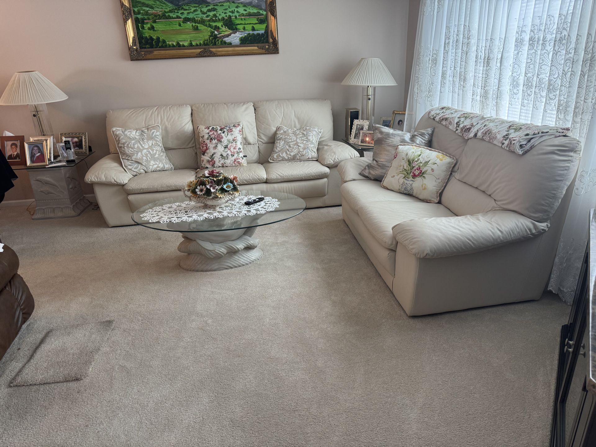 Leather couch, love seat, two side tables, coffee table and entry table. Barely used in excellent condition