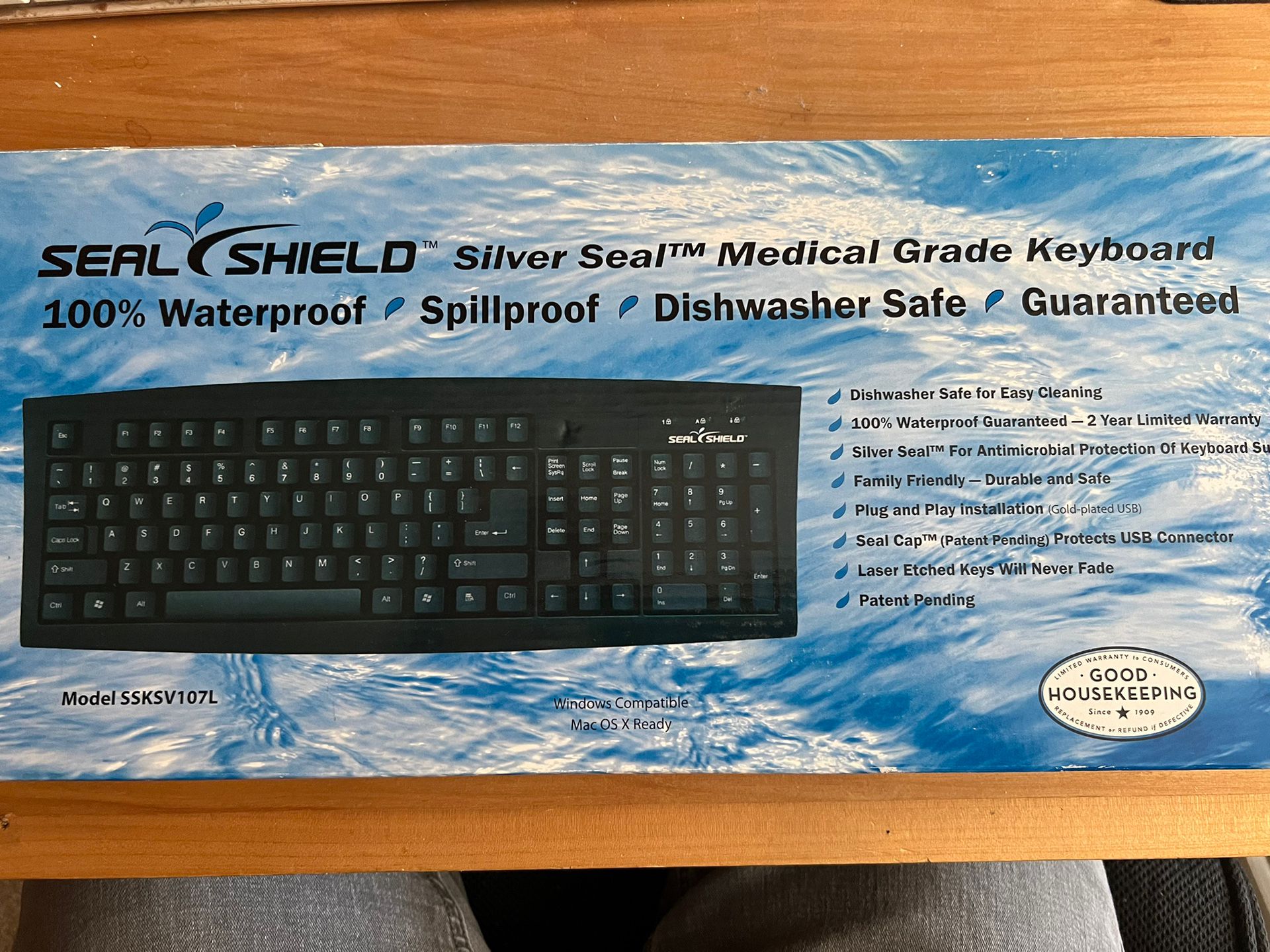 USB Keyboard that can he sanitized in dishwasher. Completely waterproof safe from spills crumbs Pick up in Plum Canyon area of Santa Clarita. By with some of my other items for a discount.