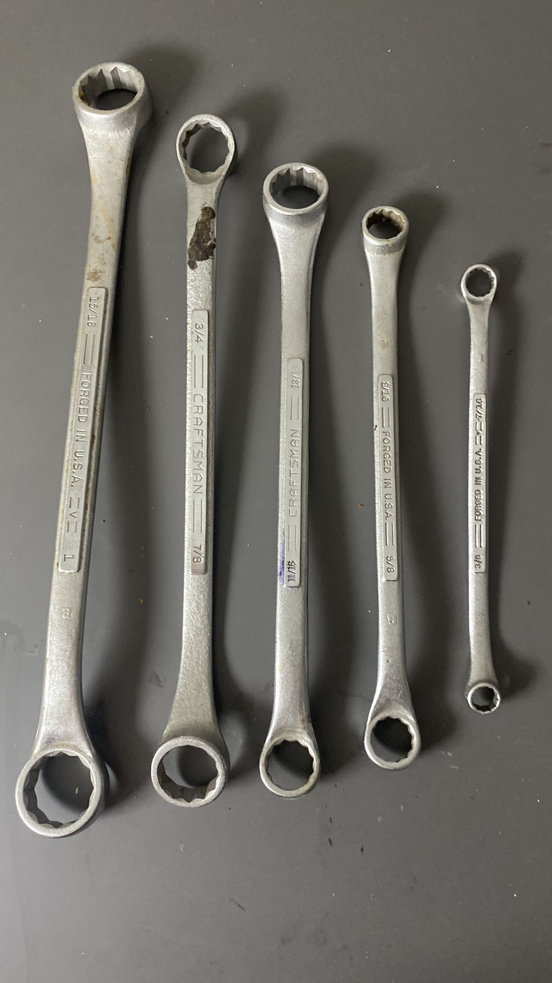 Craftsman SAE Combination Box End Wrench Set (15/16", 7/8", 3/4", 5/8", 3/8") - 5-Piece Vintage USA Made