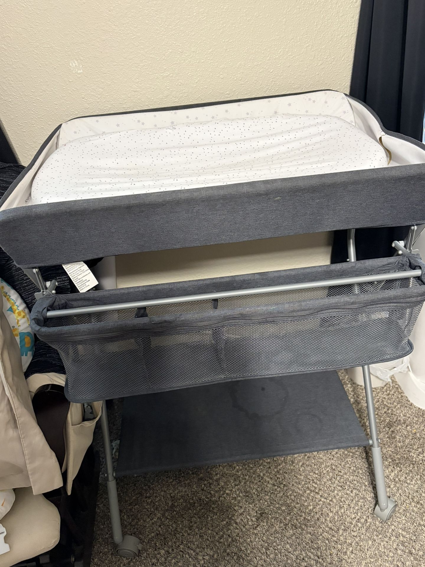 Son out grew it! Amazing on the go. You’re able to hold items like blankets/ extra diapers on the bottom. It has a place for diapers,wipes, and creams.