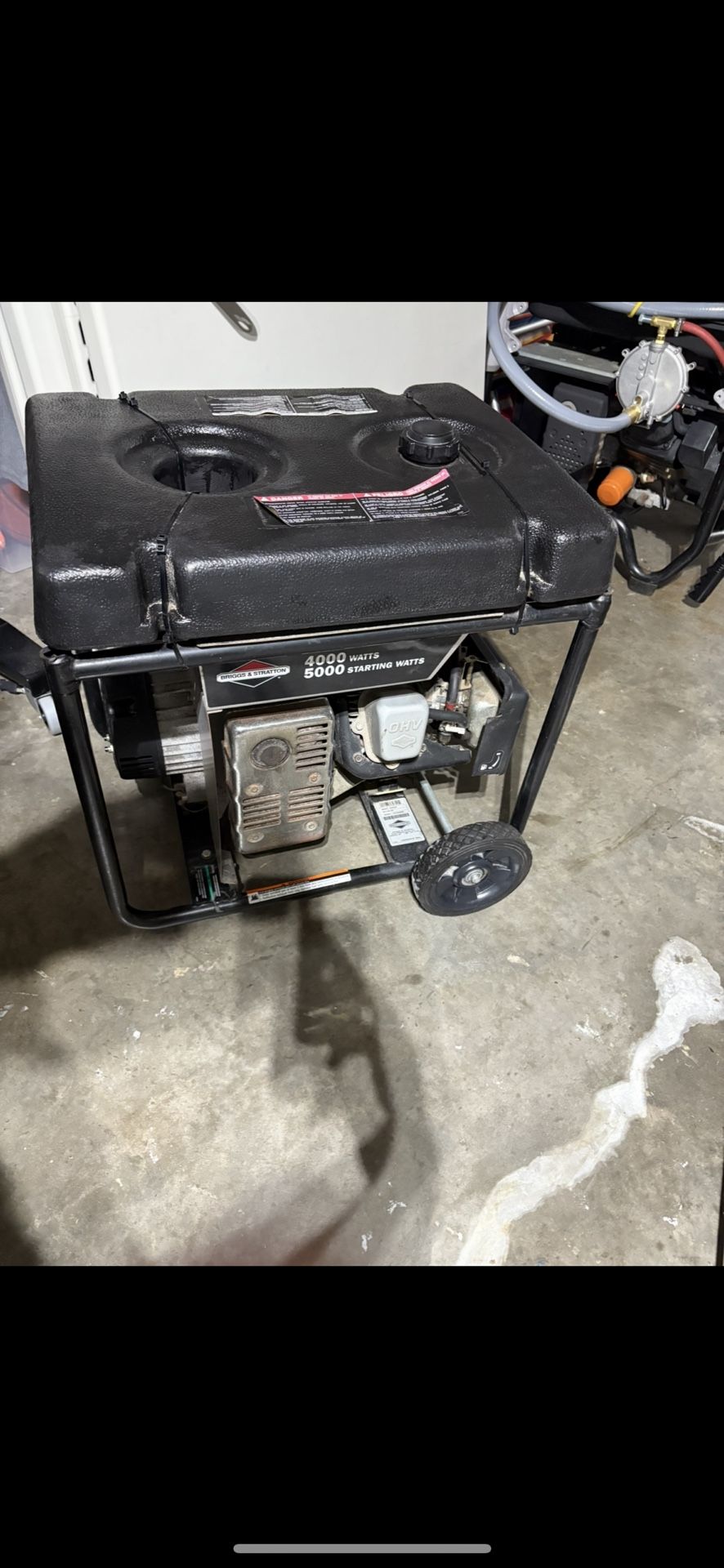 Briggs & Stratton generator, 4000 W /5000 starting watts. In great condition, starts on first pull every time. Located off 290 and Highway six