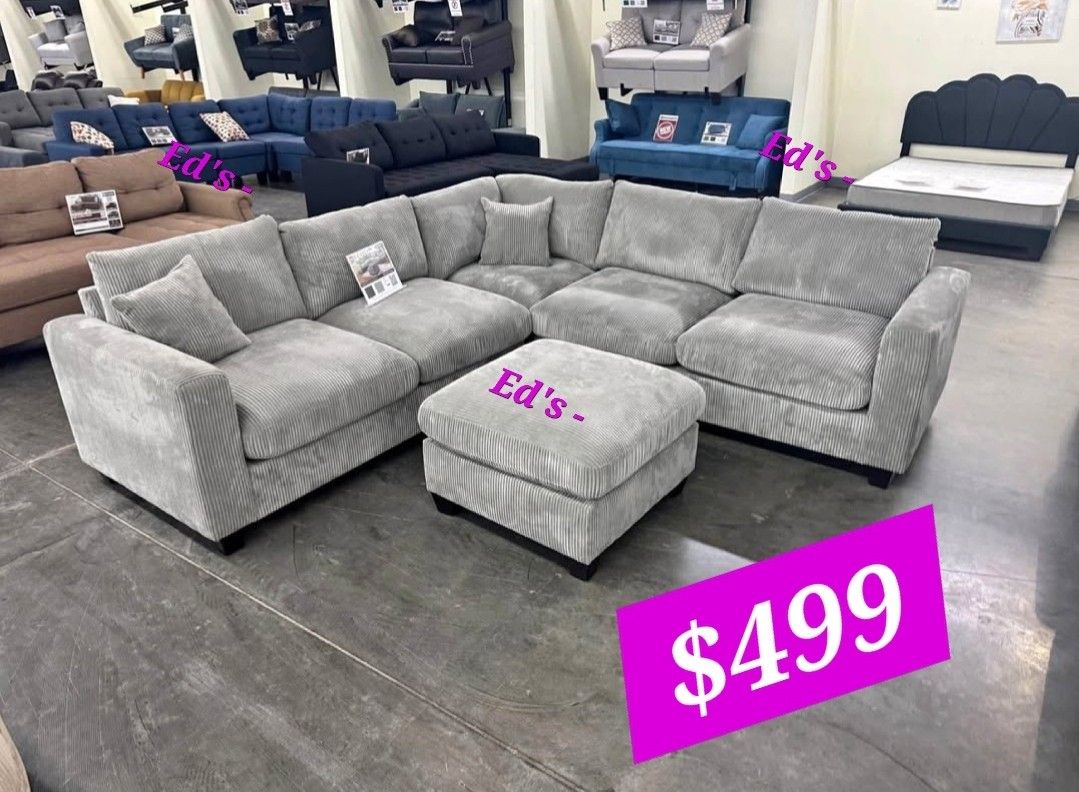 BRAND NEW 4PCS SECTIONAL SOFA SET WITH OTTOMAN AND ACCENT PILLOW INCLUDED ALL NEW IN BOX ASSEMBLE REQUIRED AVAILABLE IN GRAY OR IVORY CORDUROY
