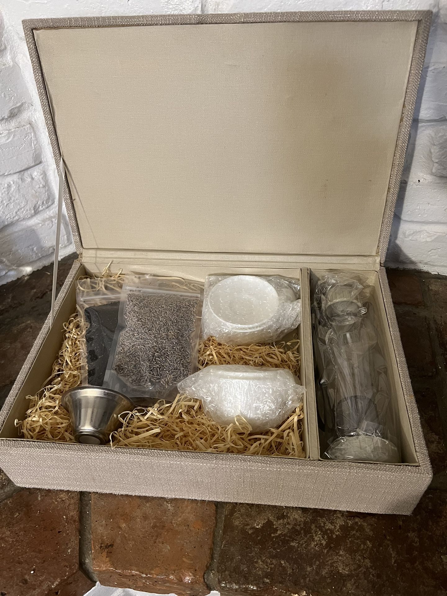 Includes: 2 Tea Cups 2 Saucers 1 Tea Steeper 1 Tea Steeper Bottle 1 bag of Lavender 1 bag of Earl Grey