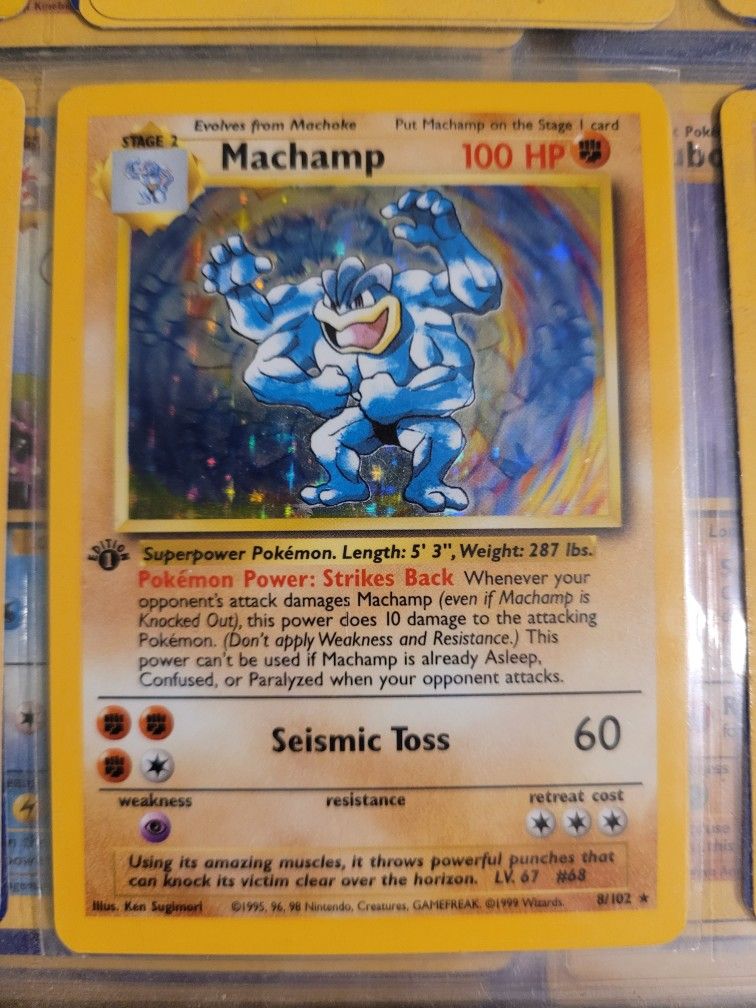 This is a NM/M condition 1st edition holofoil Machamp. Never played with, straight from pack to sleeve.