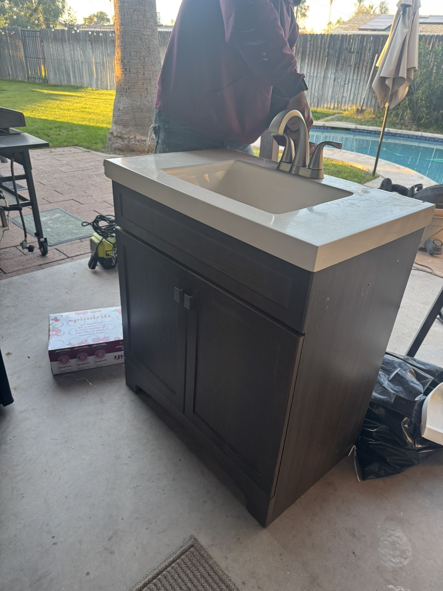 in great condition. small holes on one side from toilet paper holder. price doesn’t include the faucet but if wanted could add $75.