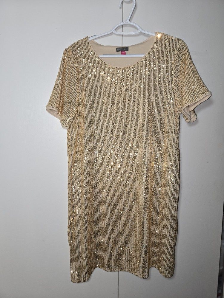 Short sleeve shirt dress Gold sequins Size Large Used once