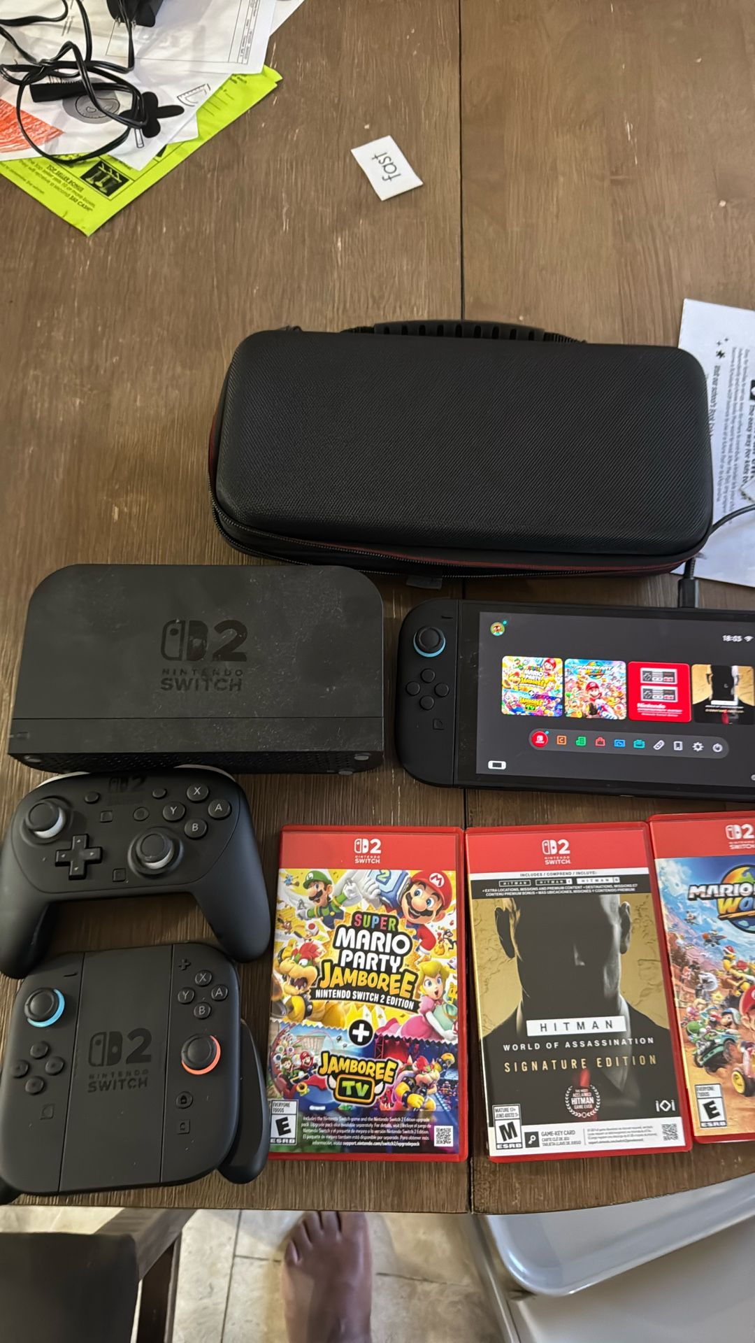 1 controller 2 joy cons 3 games (Hit Man •Mario party Jamboree•Mario Kart World Carry case