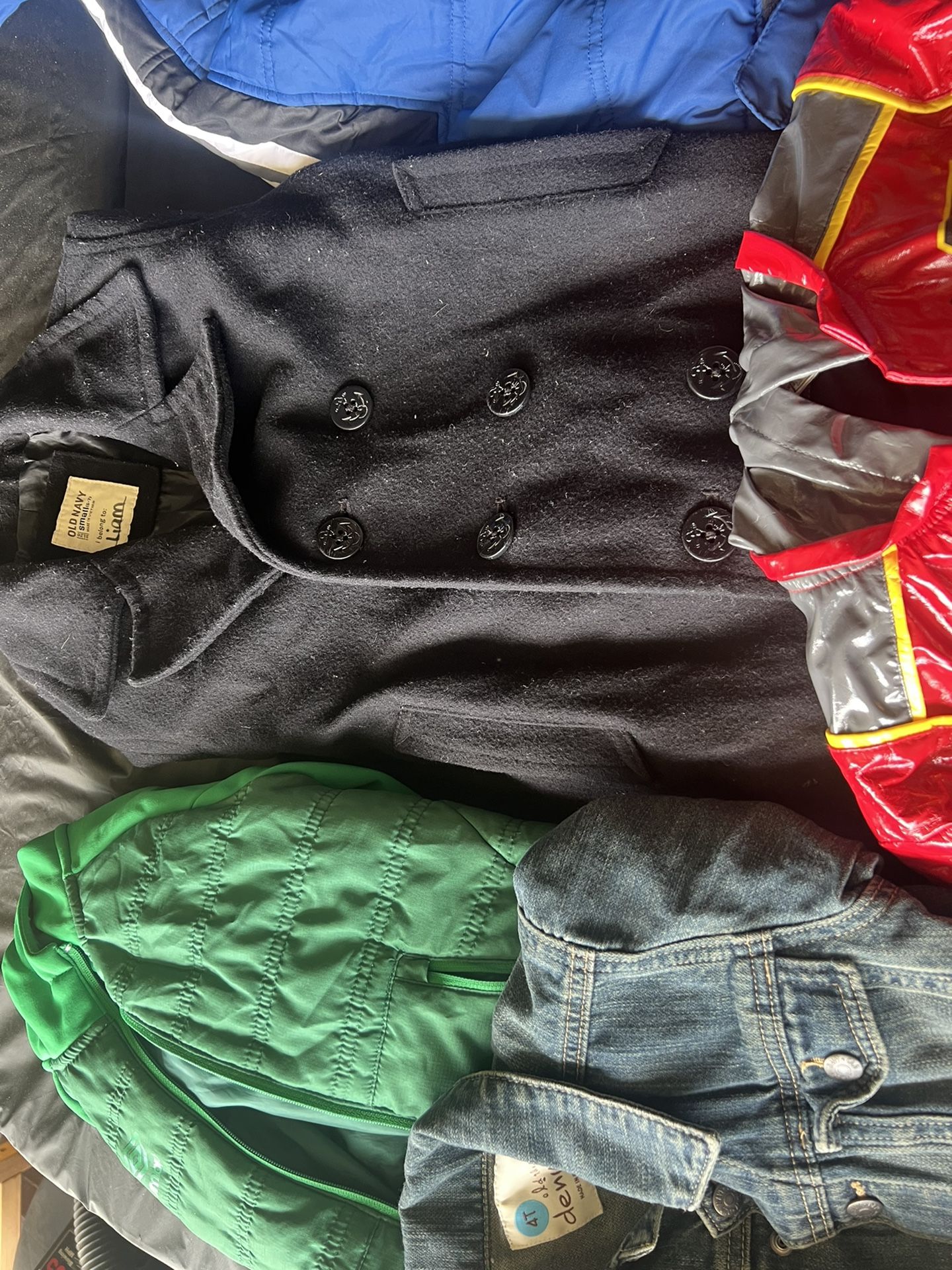 Different jackets, peako, jeans, rain, snow and beach jacket size 3t-size 7