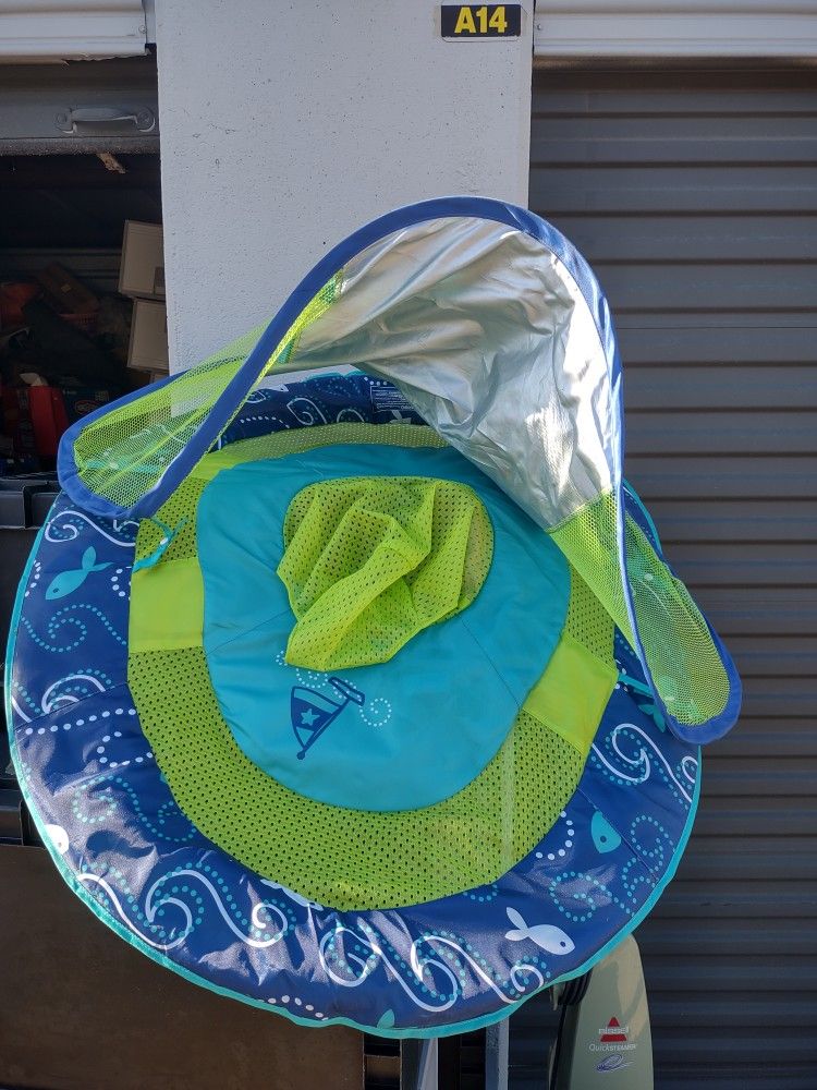 SWIMWAYS SWIM STEP 1 BABY SPRING FLOAT SUN CANOPY AGES 9-24 MOS Blue Green. Condition is Used.