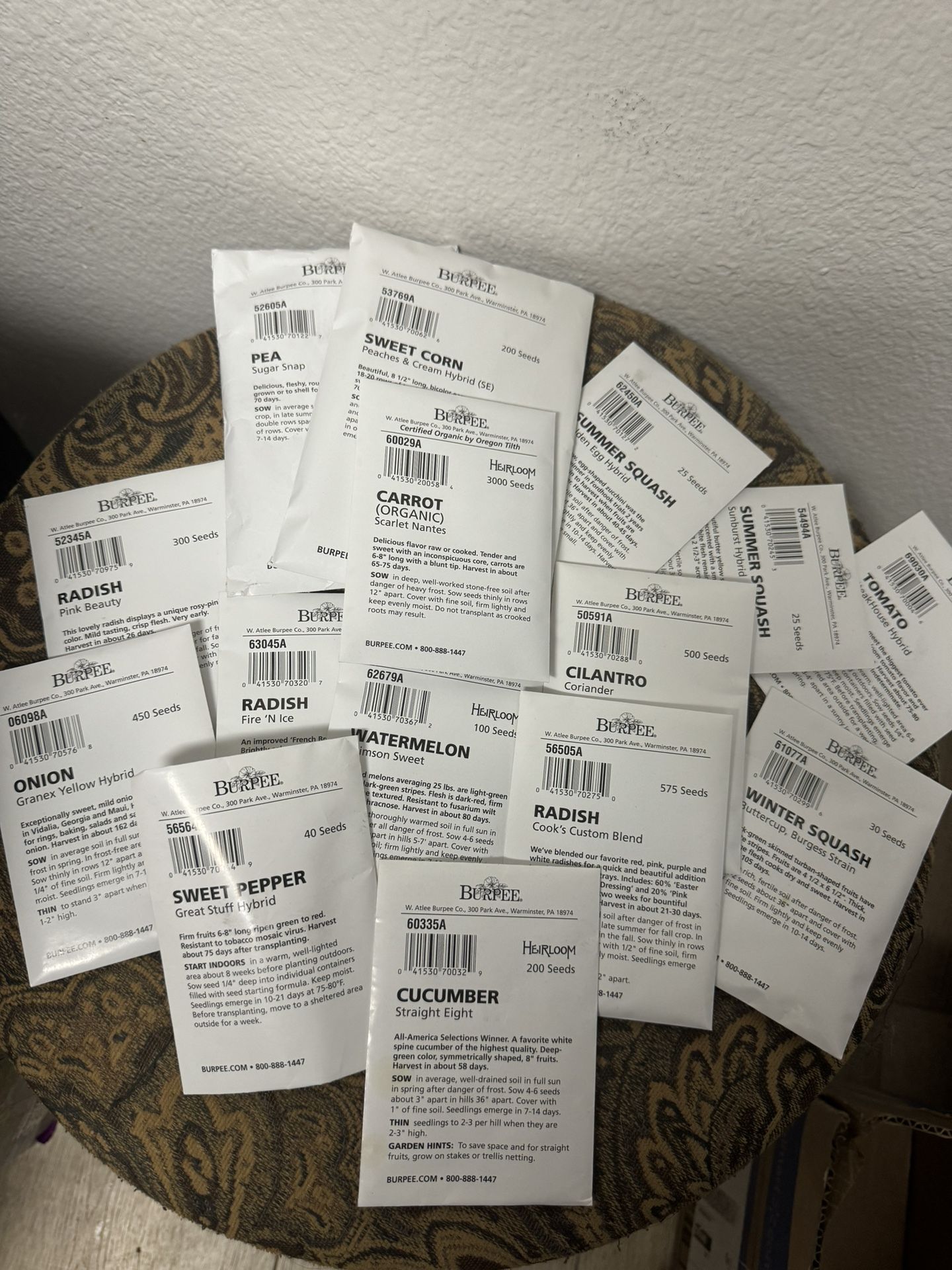Range of fruit veggie flower seeds. Price range from $0.25-$12
