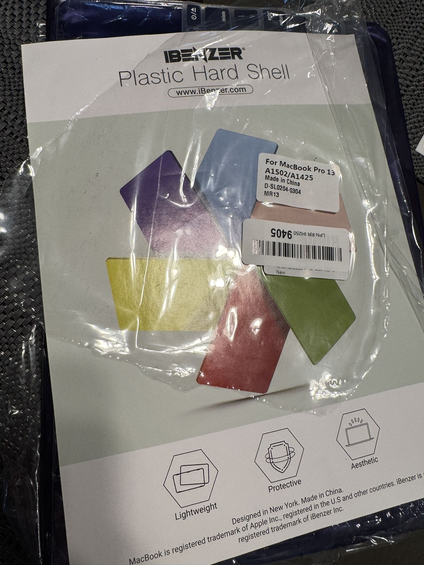 Brand new plastic hard shell for MacBook Pro 13 A1502 and A1425 with keyboard protector. $5 pick up only in Victorville