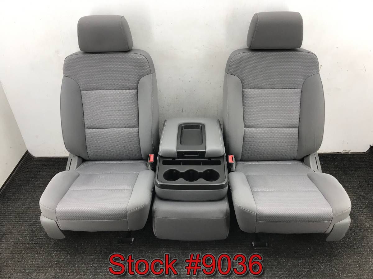 Gray Cloth Front Bucket Bench Console Seats From A 2015 Chevy Silverado 2(contact info removed) GMC Sierra Seat Stock #9036