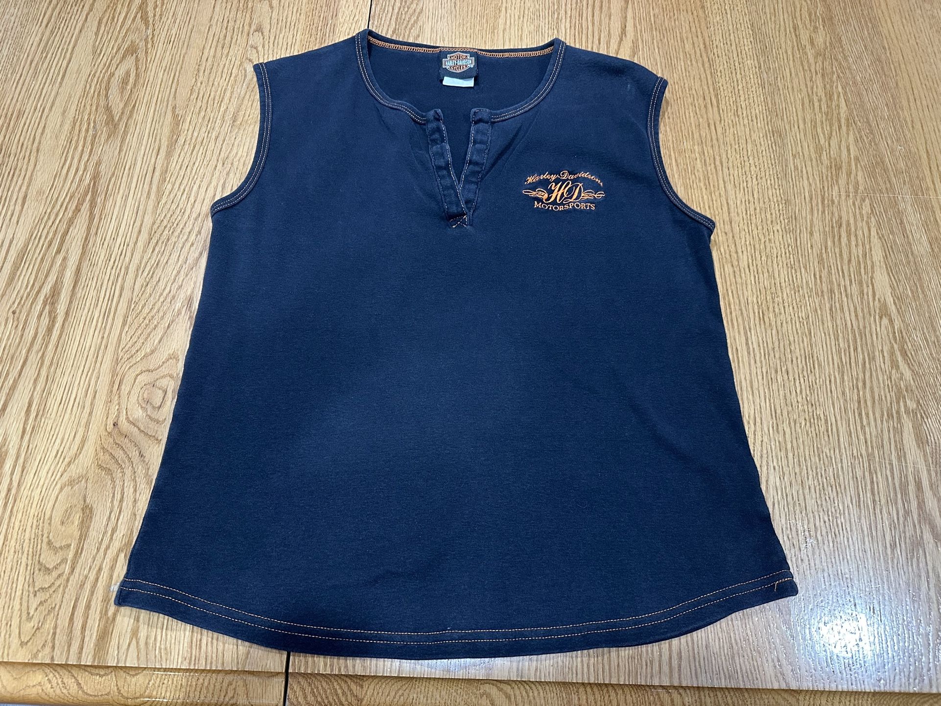 This Harley-Davidson women’s sleeveless Henley-style tank is perfect for riding weather, casual wear, or collecting authentic HD gear. It features contrast orange stitching, a soft black fabric, and an embroidered Harley-Davidson Motorsports logo on the front. The split-neck Henley detail adds a stylish touch. Item Details: • Brand: Harley-Davidson • Size: Women’s XL (XLTG on tag) • Color: Black with orange contrast stitching • Style: Sleeveless Henley tank top • Graphic/Embroidery: “Harley-Davidson Motorsports” embroidered logo in orange • Material: Not listed, feels like soft cotton blend • Made in: Canada • Condition: Gently used, no stains, holes, or major wear noted A great addition for Harley enthusiasts or anyone who loves quality motorcycle apparel. Ships fast from a smoke-free home!