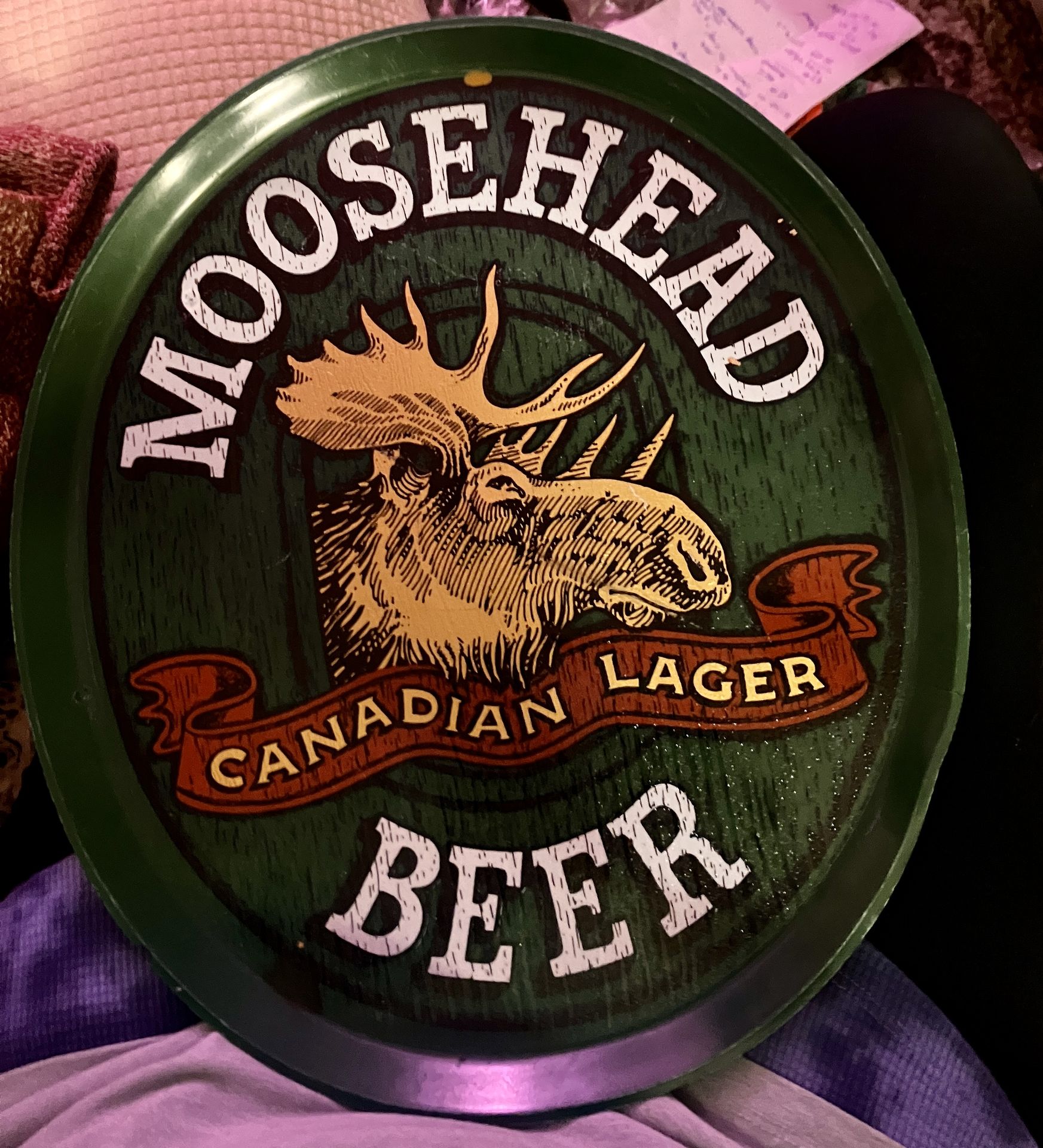 Moosehead Canadian lager beer vintage 1980’s preowned promotional beer sign. 13 1/4”Hx11 3/4W. Hard plastic wall plaque Small nick on putter edge lower 3rd left side see pics