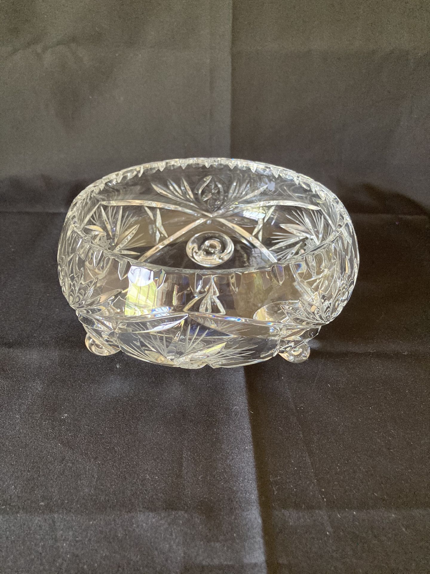 Vintage pressed glass anchor hocking three footed bowl . Pinwheel in floral design. No chips or dings. Perfect gift for Mother’s Day or wedding. 5 3/4 inches wide by 2 3/4 inches high