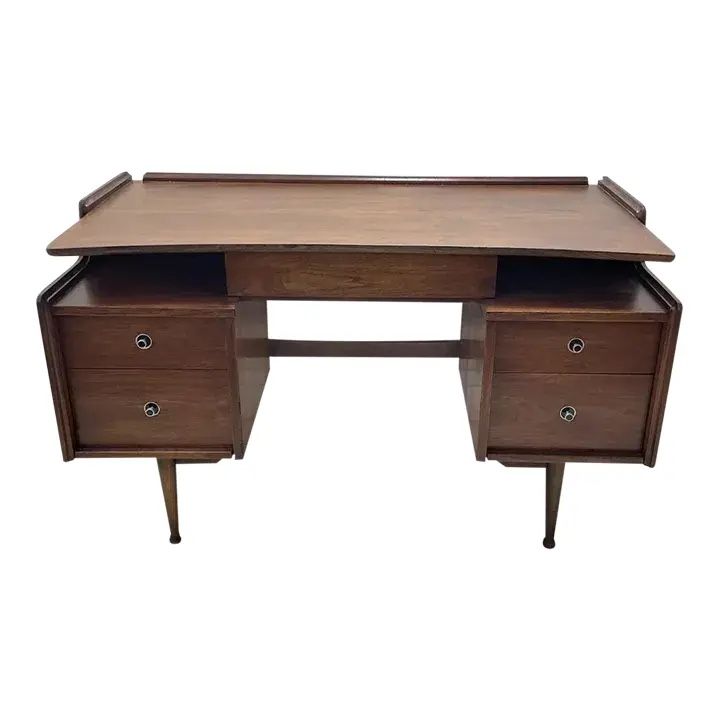 Mainline by Hooker Mid Century Walnut Double Pedestal Floating Top Desk