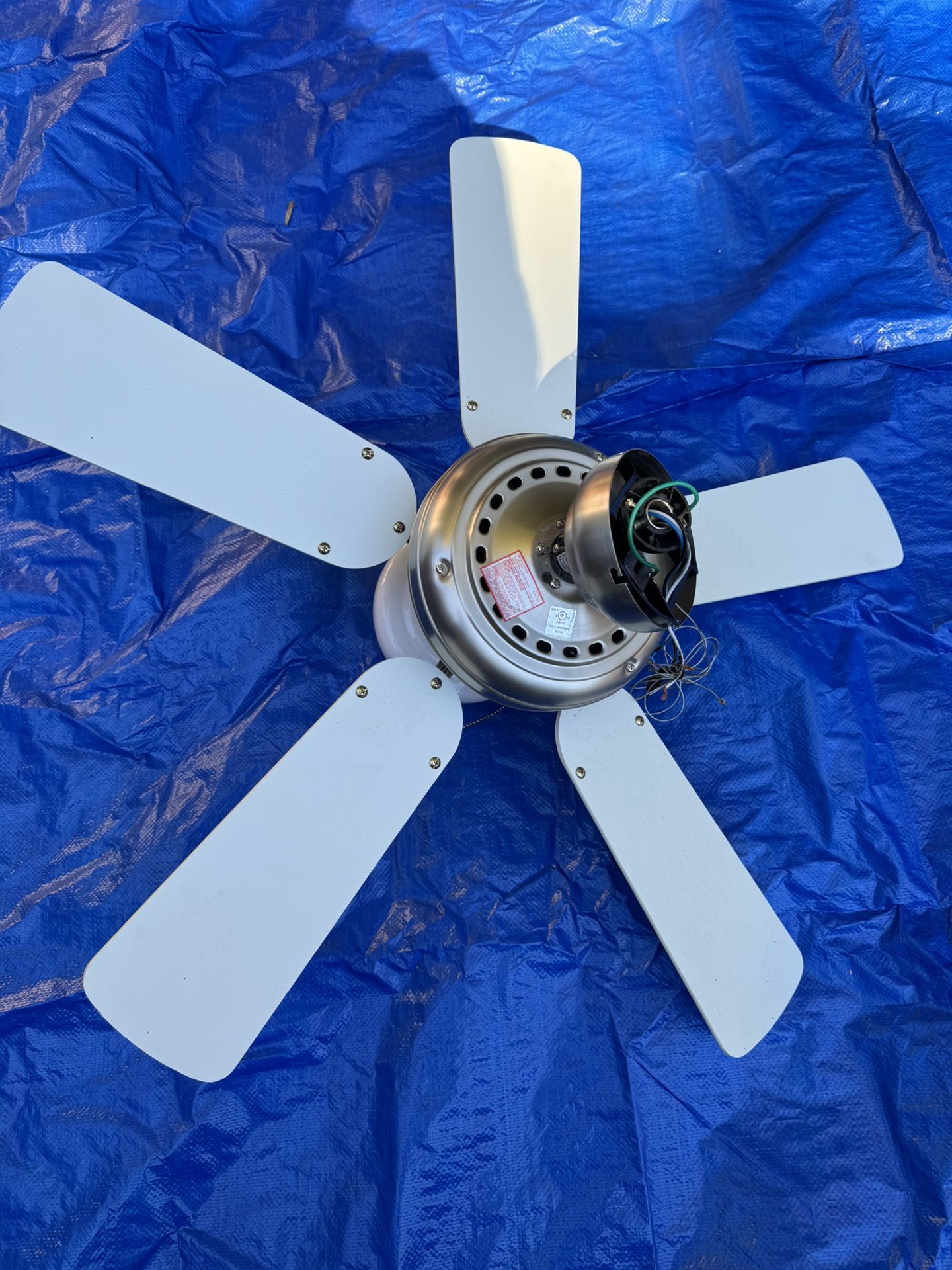 Small Ceiling Fan. Great condition! Brushed nickel finish. White paddles.