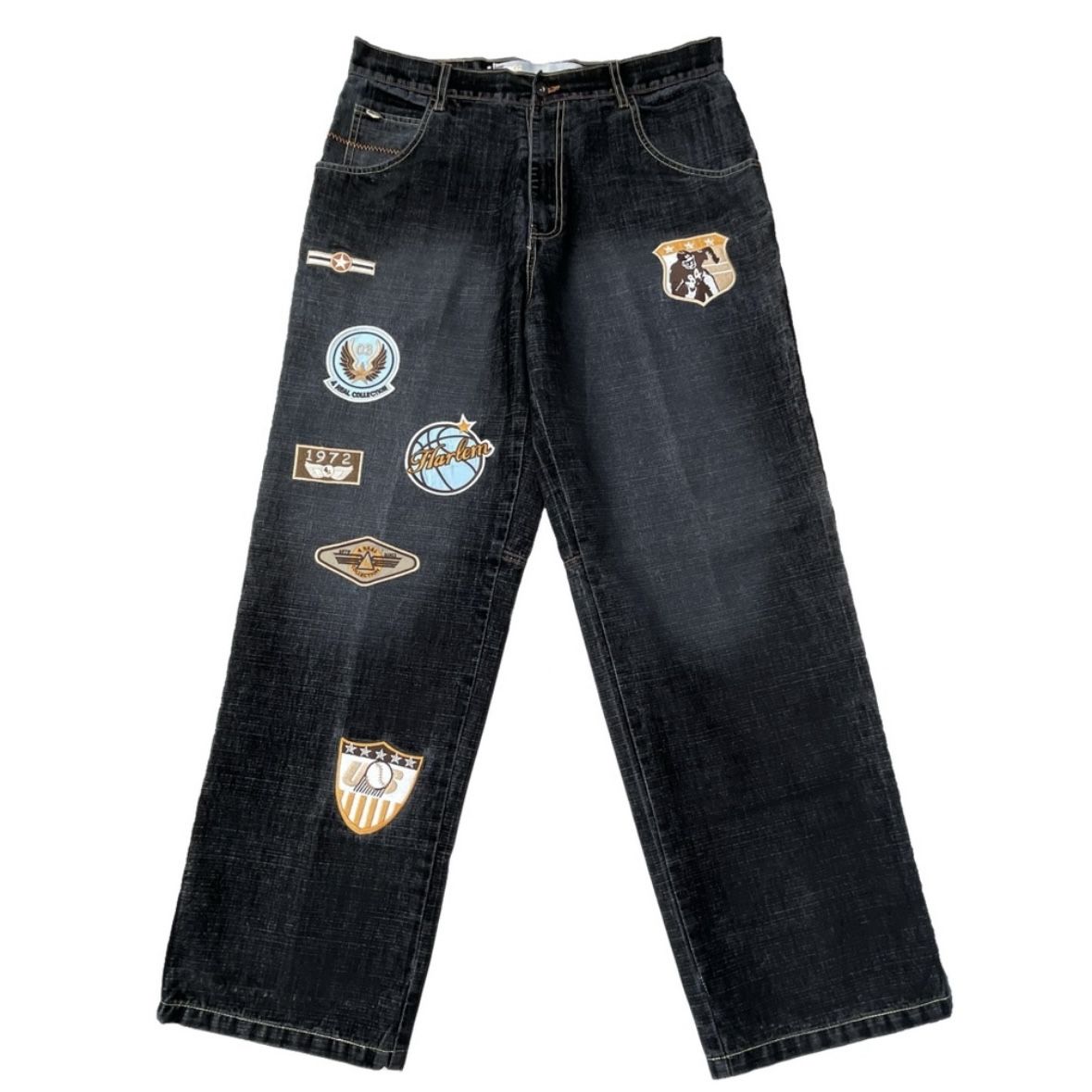 Rare Vintage Harlem Basketball Patches 4Real Collection Black Denim Dark Jeans