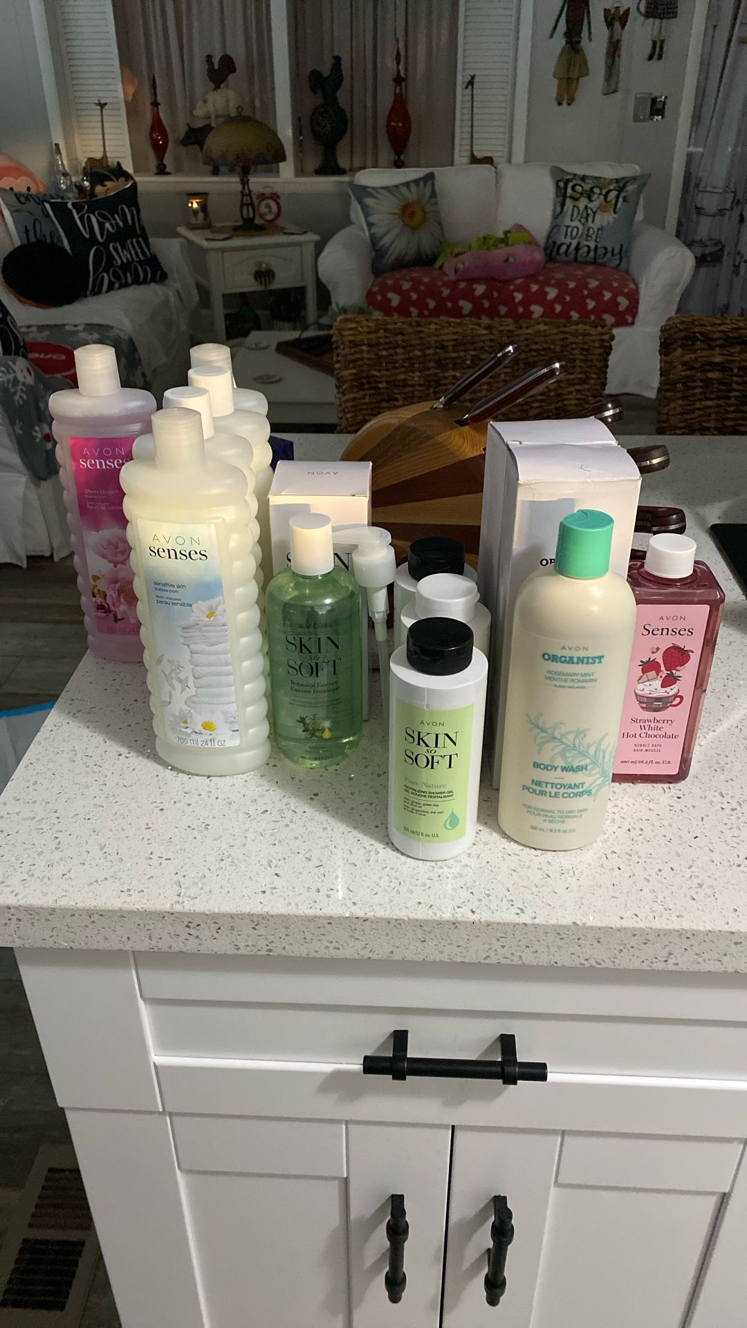 All new must go asap great gifts senses sensitive skin bubble bath are six dollars each skin so soft intensive oil is7.00ea skin so soft pure nature shower gel is 7.50each dollars each organist are seven dollars each and census of strawberry white and hot chocolate is five dollars These are the lowest prices if you look in the Avon books, they are much much more priced them at low to let them go Fort Pierce area.
